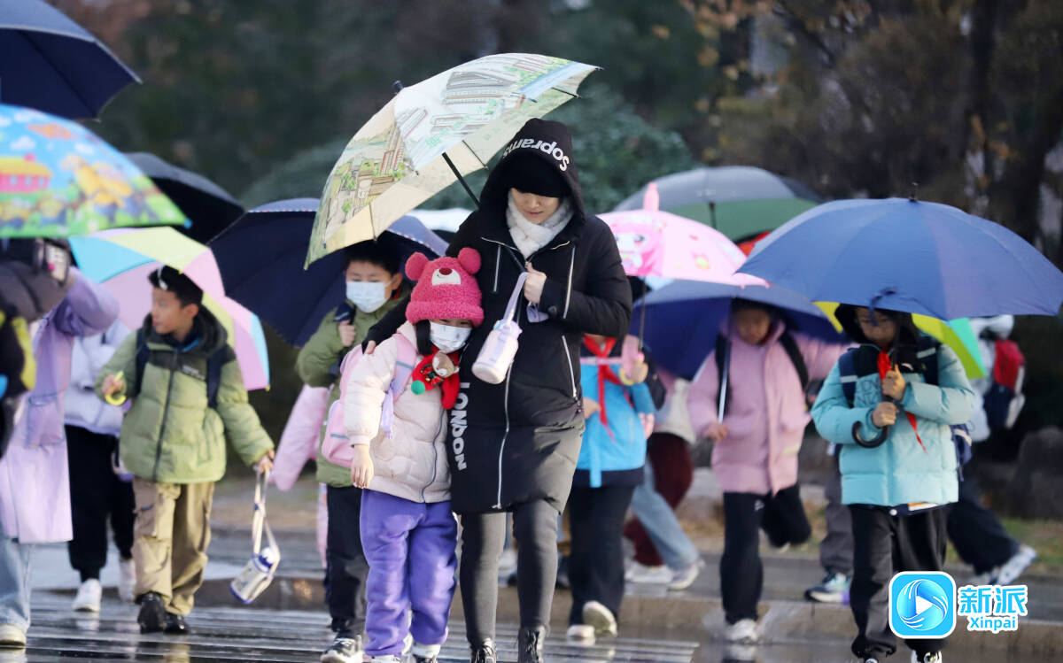 新派讯 12月23日,在城区东方路,行人在雨中出行。当日,潍坊城区迎来一场降雨天气,气温下降,蒙蒙冬雨让人们感受到阵阵寒意。