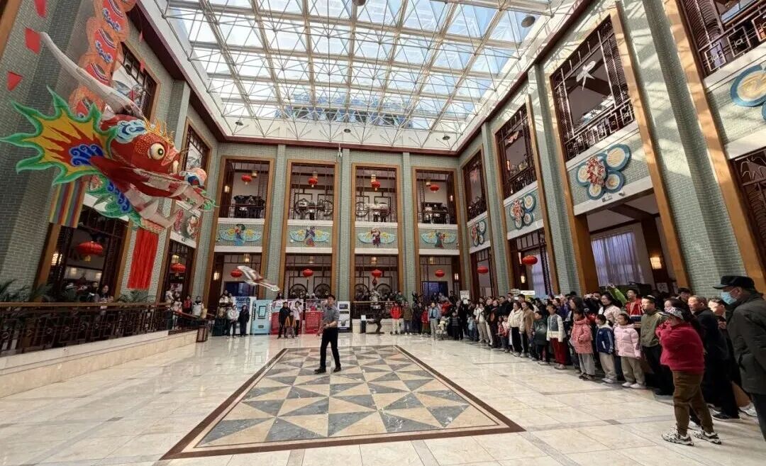春节期间,十笏园博物馆以“赴十笏园之约”为主题,打造沉浸式传统年俗体验空间。入园击鼓、祥狮巡游、汉服NPC互动、投壶猜谜等环节让游客仿佛穿越回古代园林。