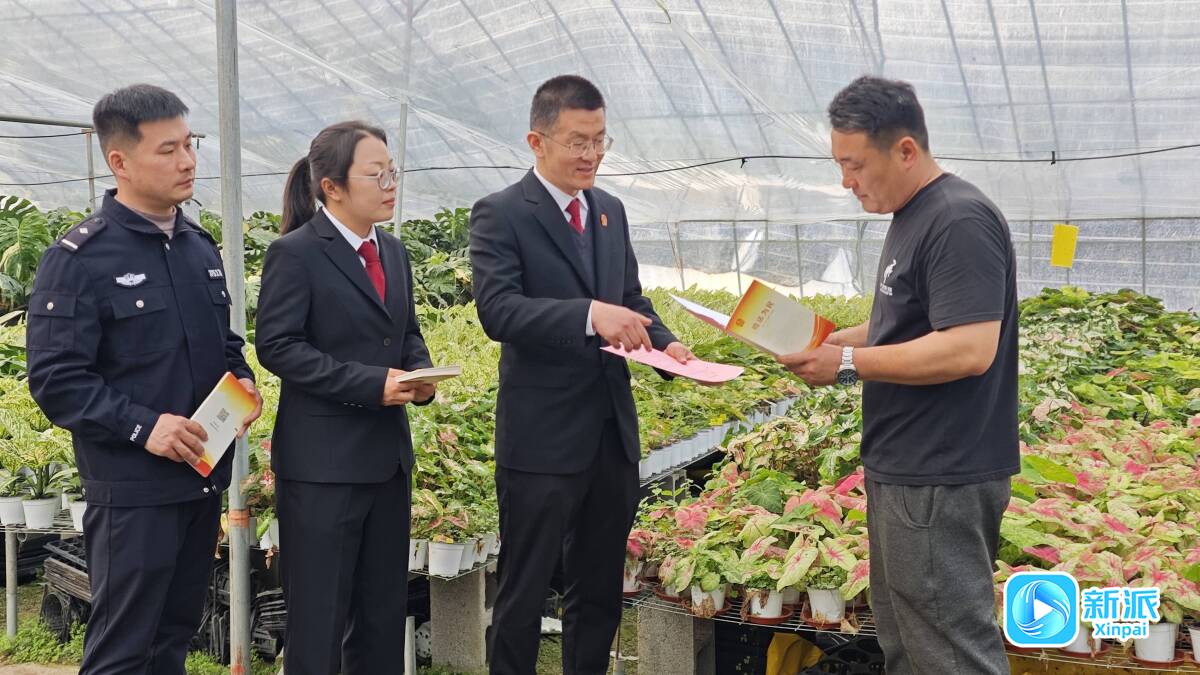 “花卉法庭”法官走进花卉种植大棚向花农进行普法。