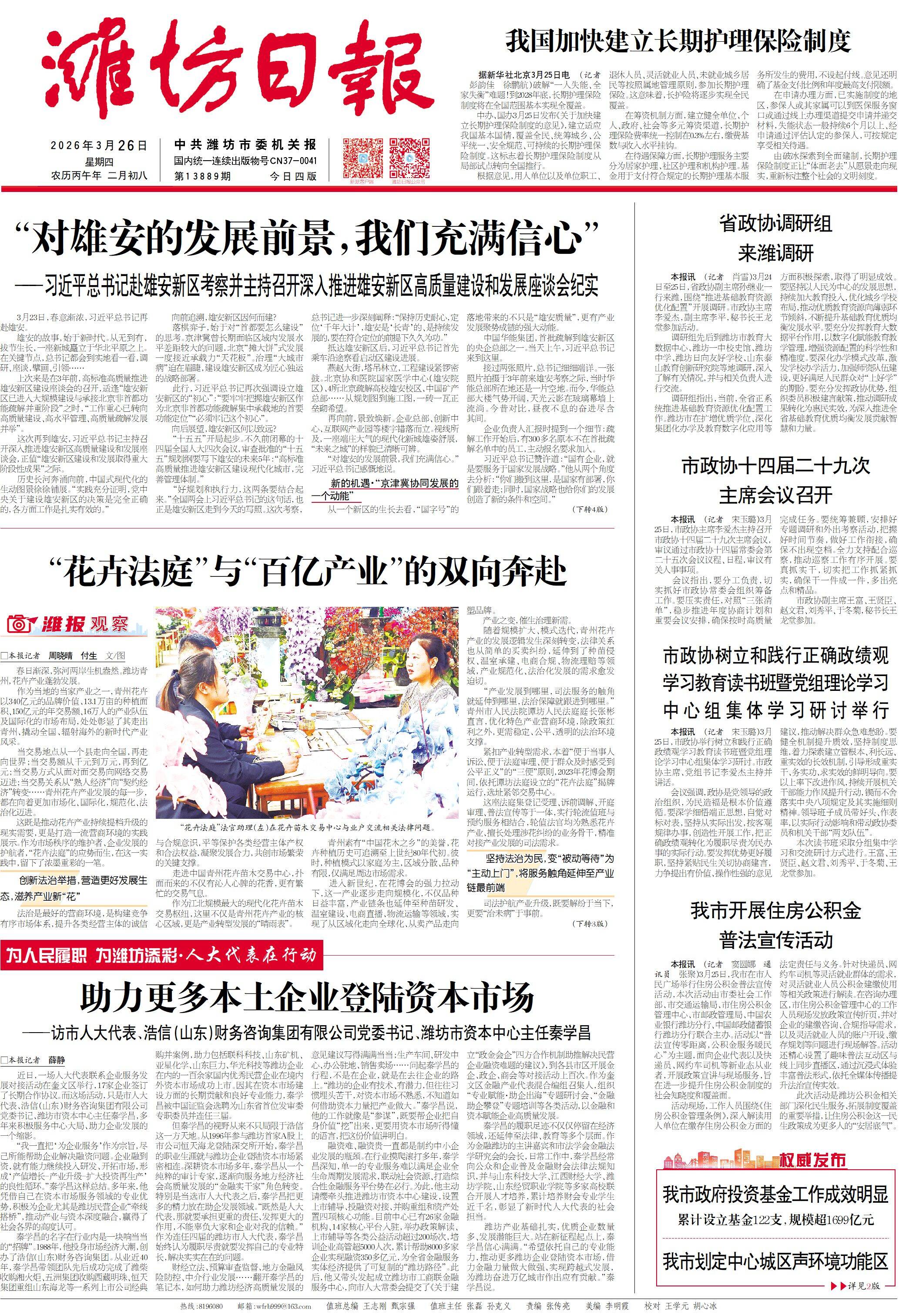 发展所需,民心所望,代表所行。为生动反映人大代表履职成效,潍坊市人大常委会机关、潍坊市融媒体中心在潍坊日报、新派客户端、新派新闻视频号联合开设“为人民履职 为潍坊添彩·人大代表在行动”专栏,讲述代表扎根一线、干事创业、为民建言的履职故事,记录他们以实干诠释初心、用行动践行使命的生动实践,凝聚加快建设更好潍坊的奋进力量。敬请关注。