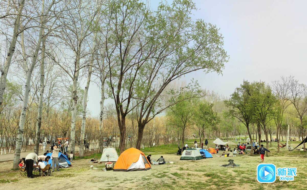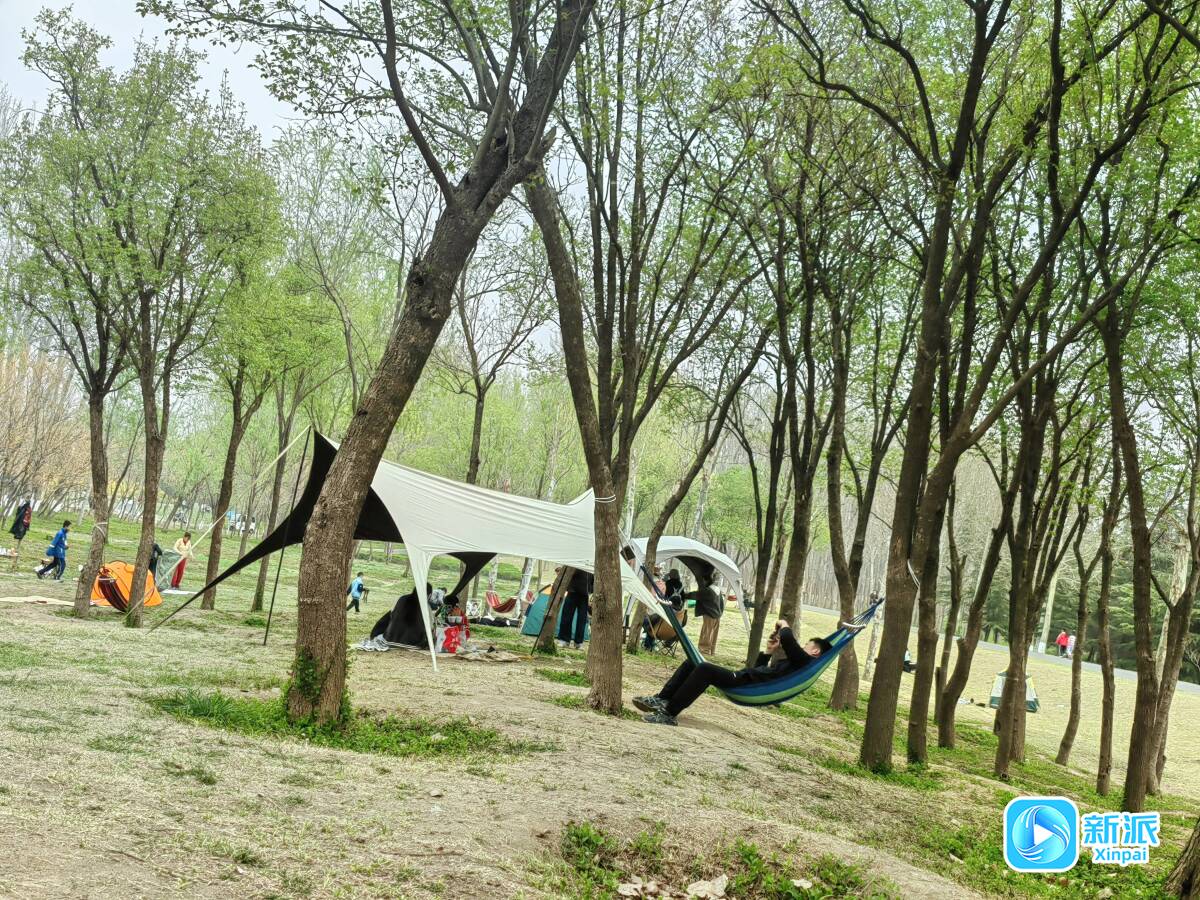 3月29日,市民在北辰绿洲湿地公园露营、野餐。