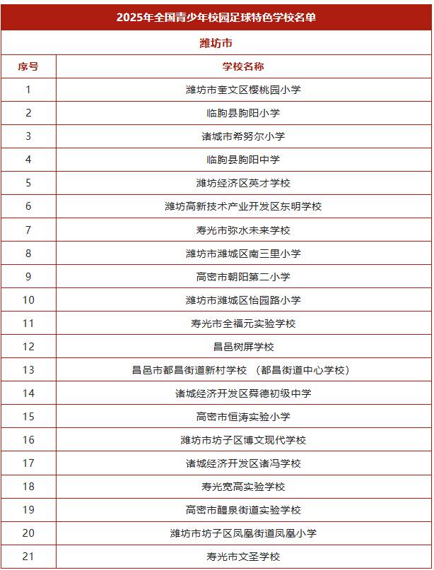 其中,潍坊21所学校上榜。