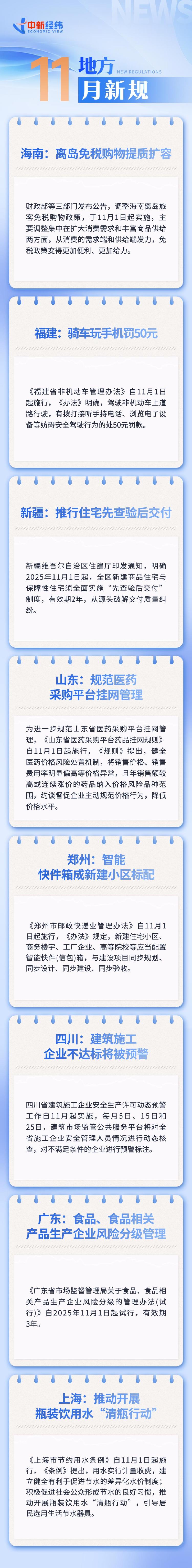 国产小客车新车上牌不用再跑车管所、互联网法院管辖范围调整、海南离岛旅客免税购物政策调整……2025年11月,一大波新规将施行,哪一项与你有关? 来源:中新经纬APP编辑:王誉林 张永超一审:贾春毅二审:孙瑞永三审:管延会