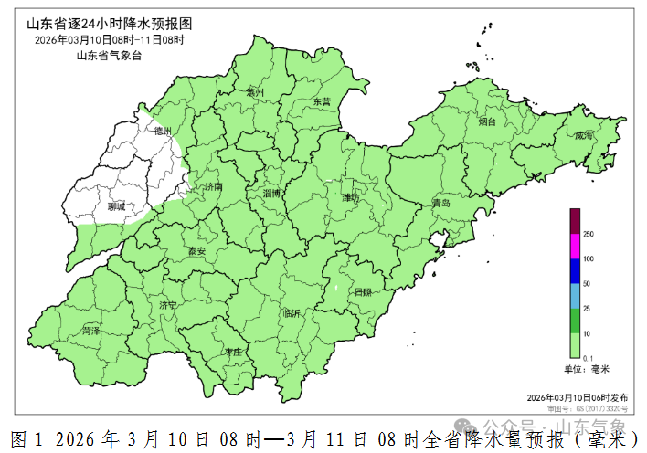 最低气温:鲁中山区、半岛和北部沿海地区-3℃左右,其他地区2℃左右。