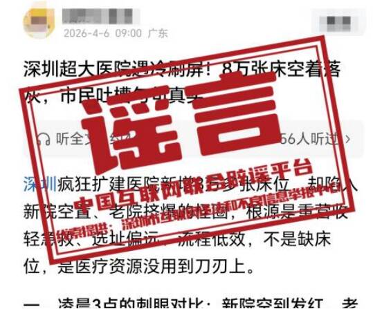 辟谣 网传“深圳超大医院遇冷、八万床位空置”不实