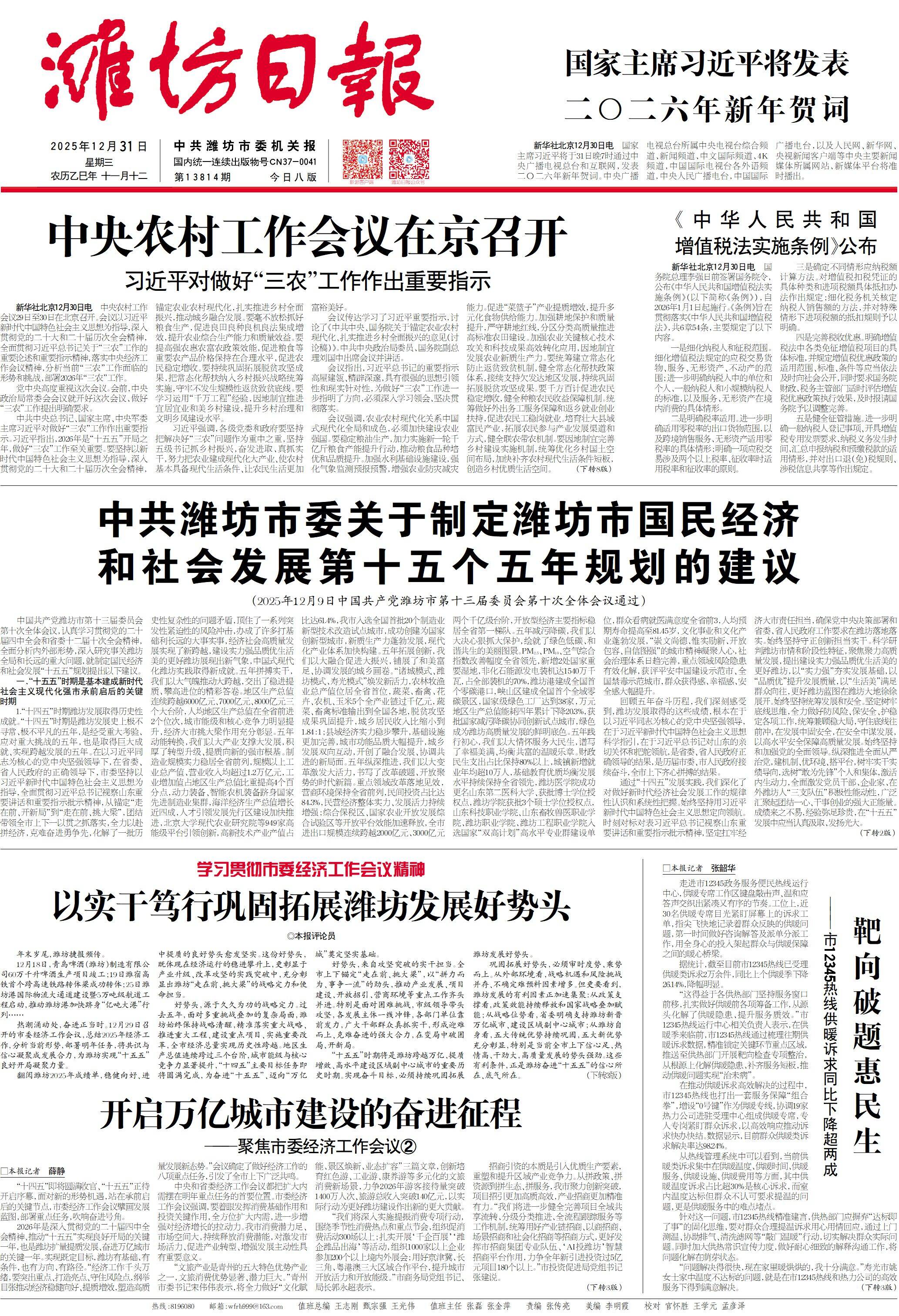 热潮涌动处,奋进正当时。12月29日召开的市委经济工作会议,总结2025年经济工作,分析当前形势,部署明年任务,将共识与信心凝聚成发展合力,为潍坊实现“十五五”良好开局凝聚力量。