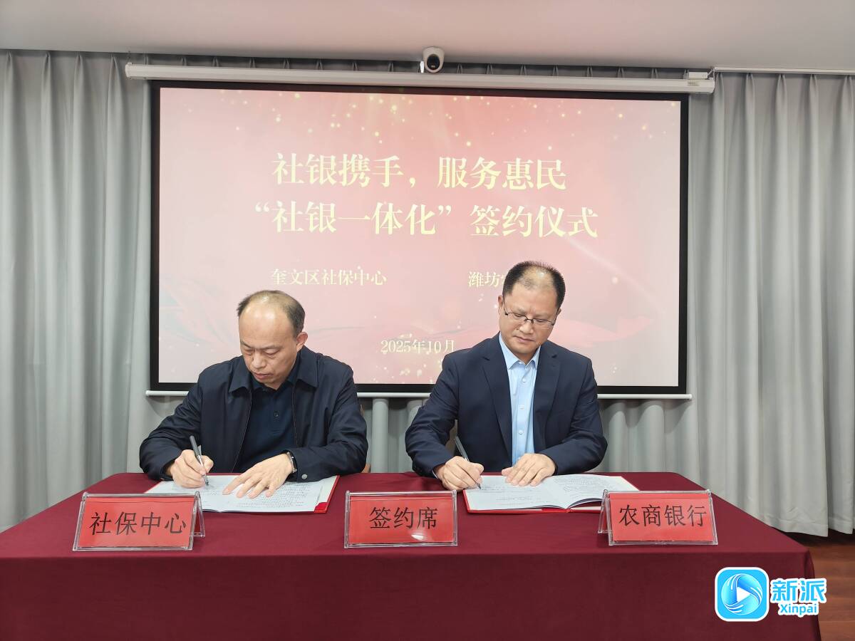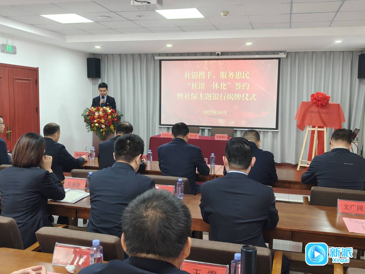 新派讯 10月28日上午,潍坊市首家社保合作主题银行在潍坊农商银行玉清街支行正式揭牌启用,标志着我市社保服务模式迈入"金融+政务"深度融合的新阶段。潍坊市社会保险事业中心、奎文区社会保险事业中心、潍坊市农信联社、潍坊农商银行相关负责人共同出席仪式,见证便民服务新举措落地,并就深化政银合作、优化民生服务展开深入交流。