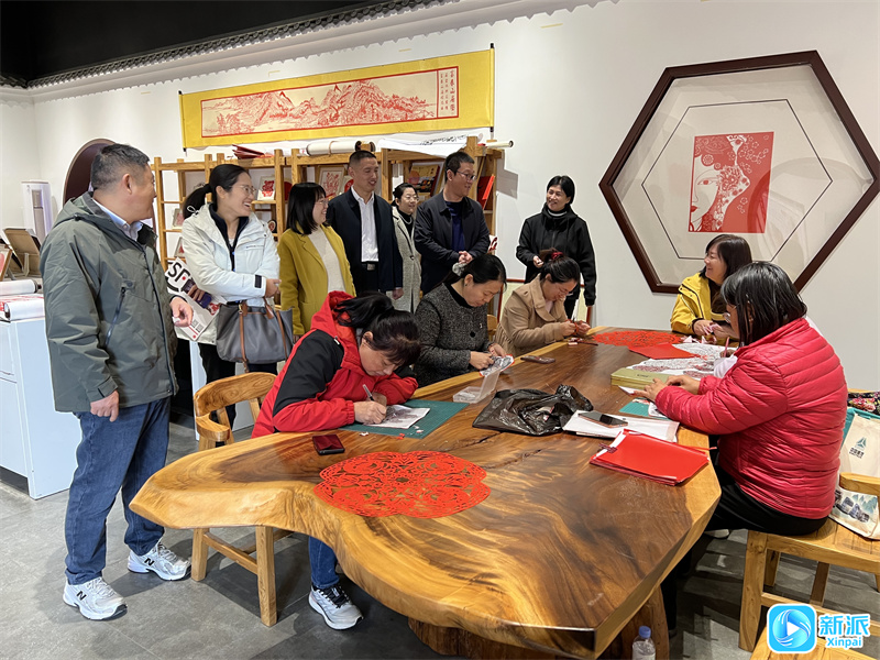 基层文化建设指导员到临朐县冶源街道北杨善村调研剪纸技艺。