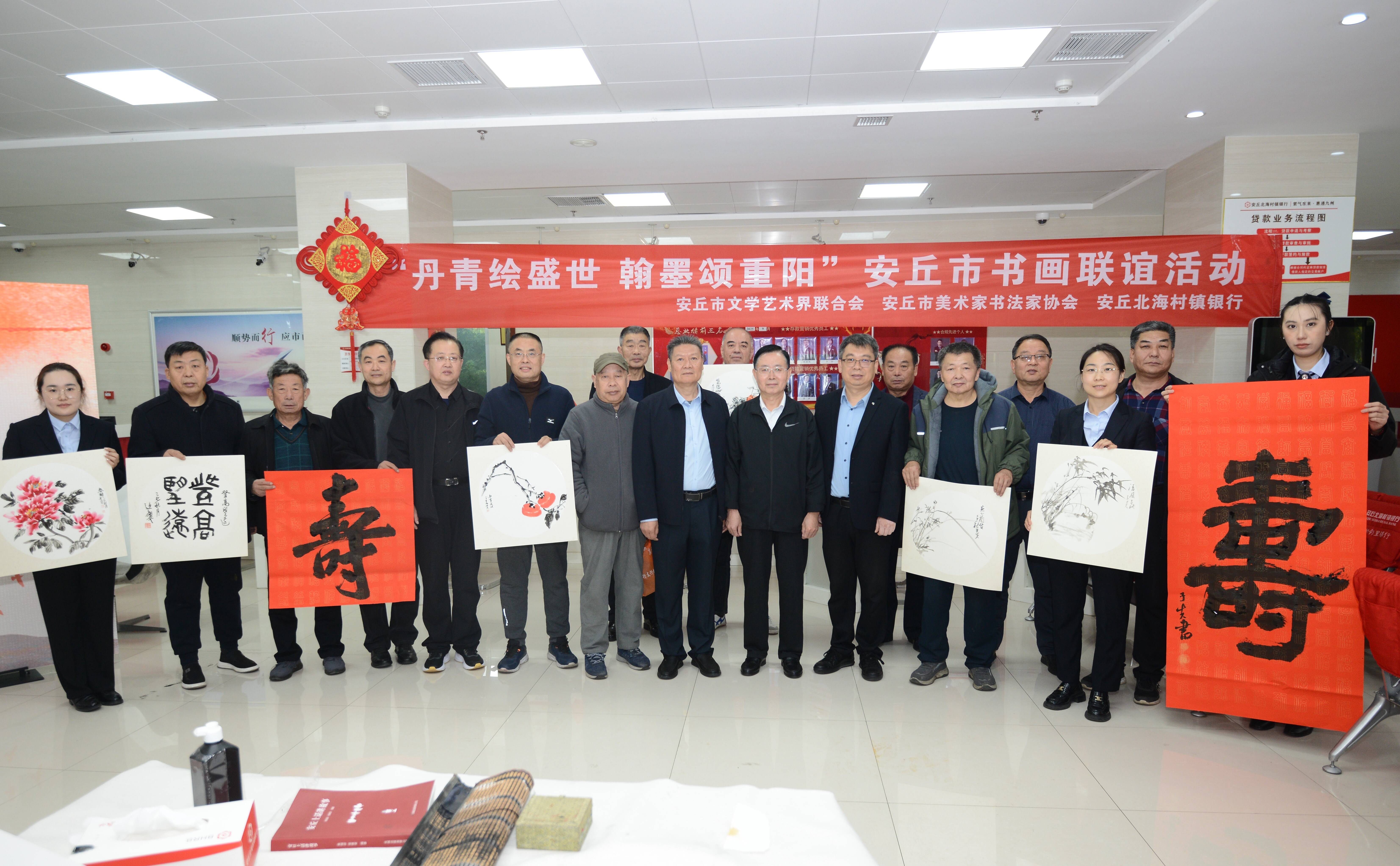新派讯 岁岁重阳,今又重阳。10月29日,安丘市文联,安丘市美术家书法家协会联合安丘北海村镇银行举办了主题为“丹青绘盛世 翰墨颂重阳”安丘市书画联谊活动,大力弘扬尊老敬老的传统美德,传承中华优秀传统文化。