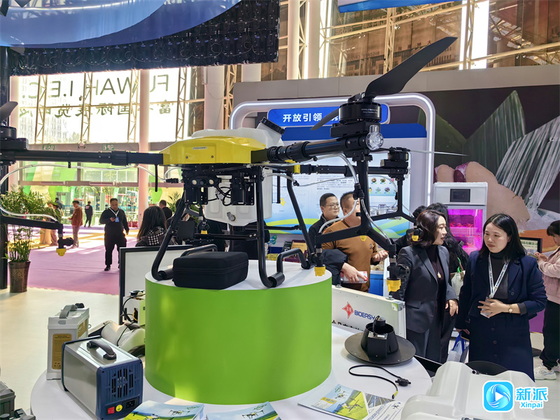与此同时,在山东兆源智能科技有限公司的展位前,一架40升容量的农用无人机同样引人瞩目。业务员高清瑜如数家珍地介绍:“它采用离心喷嘴,喷出的水雾更细,甚至能够喷洒粉末,一个小时能够作业18公顷田地。”这款先进的无人机目前已销售至北美、南美、非洲等多地,以卓越的性能赢得了全球客户的青睐,成为中国智慧农机“走出去”的生动例证。