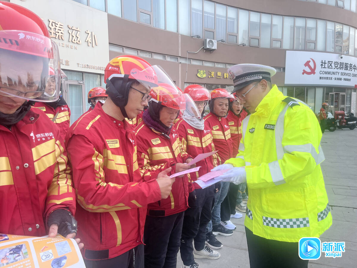 新派讯 为增强新就业群体的交通安全意识,共同营造文明有序的交通环境,10月28日,潍坊市奎文区东关街道李家街社区依托社区“新锋·聚力港”平台,共同组织开展“暖‘新’护航·平安‘驿’路”——“健康护锋”交通安全宣传活动,为辖区新就业群体送去一堂实用、生动的交通安全课。