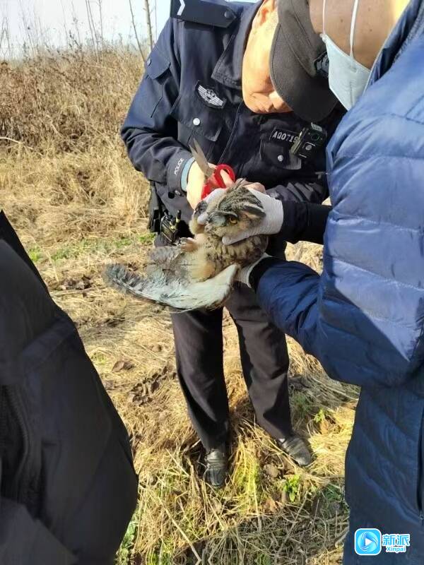 每一根线的松动都可能带来新的刺痛,雕鸮的每一次抽搐都牵动着所有人的心。“快了,再坚持一下……”终于,最后一道勒在喉部的致命网线被成功剪断!队员们进行初步救护后,将其送往野生动物救助中心接受专业治疗与康复。