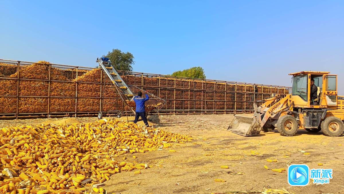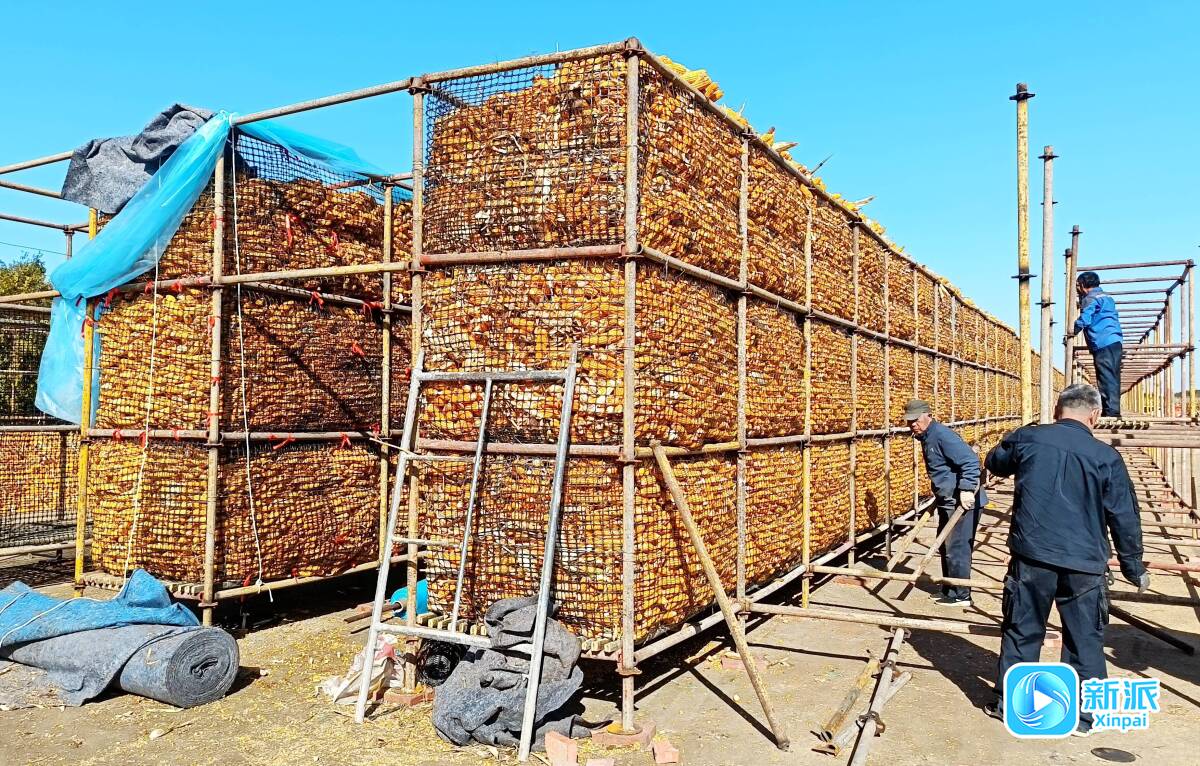 新派讯 一座座长80米、宽1.2米、高3米的“玉米楼”拔地而起,连成排的“玉米楼”如金黄巨墙,底部离地面20厘米且自带通风设施,内里装满金灿灿的玉米棒,给人一种丰收的震撼——这是近日记者在潍坊安丘金冢子镇金冢子村储粮场见到的景象。