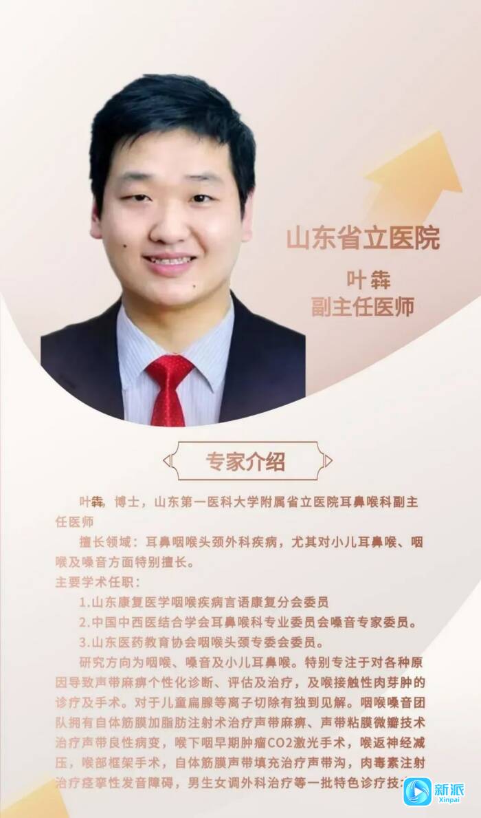 新派讯 12月15日(周一),山东省立医院耳鼻喉科副主任医师叶犇将受邀到昌邑市人民医院坐诊、会诊、手术。届时,患者将无需再奔波劳累,在家门口就能享受到顶级专家的医疗服务,不仅节省了患者的时间和精力,还减少了患者的经济负担。
