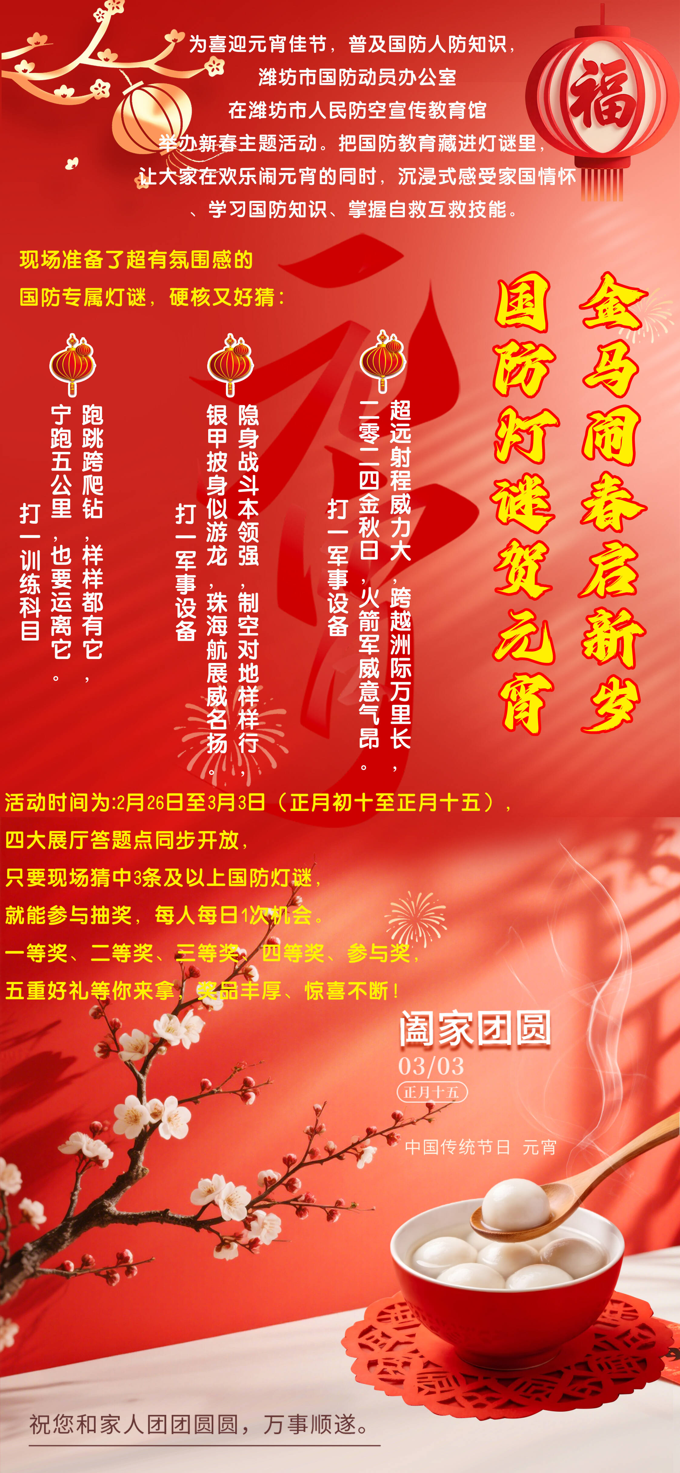 新派讯 猜灯谜、涨知识、赢好礼……潍坊市国防动员办公室“金马闹春·国防灯谜会”火热开启啦!