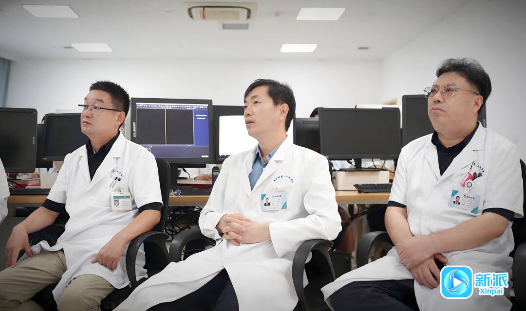 牛庆亮教授(中)与团队分析影像