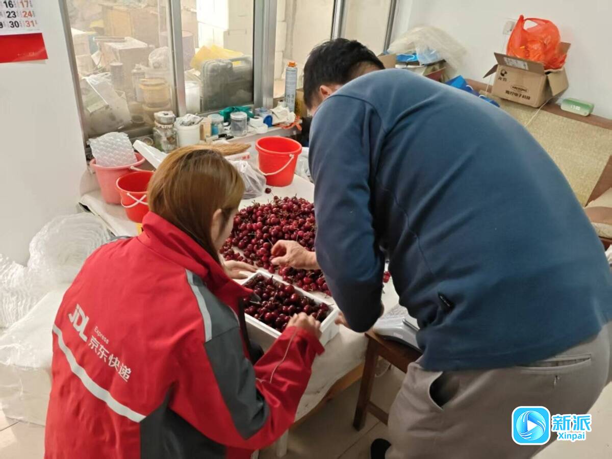 线下,上株梧樱桃交易市场热闹非凡,顺丰、京东等物流企业入驻,日发快递超万件。新鲜的樱桃从枝头摘下,24小时内就能送到全国消费者手中,新鲜度有保障,客商抢着要。