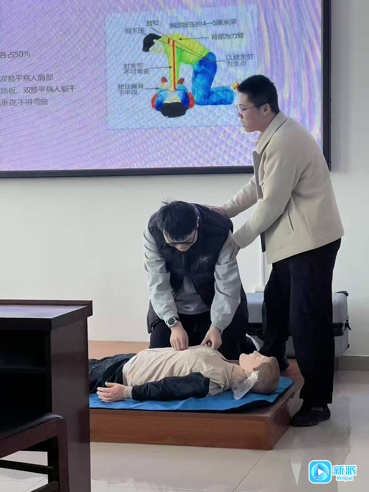 实操演练作为此次培训的核心环节,现场氛围热烈,志愿者讲师通过摸拟人演示心肺复苏全套操作,从按压的精准点位、深度与频率,到人工呼吸的节律与力度,逐一拆解、耐心示范,确保人人操作标准规范。不少居民分组上台实操,在志愿者讲师的专业指导下反复练习关键急救动作,大家学习热情饱满,主动提问请教,现场形成浓厚的学习交流氛围。