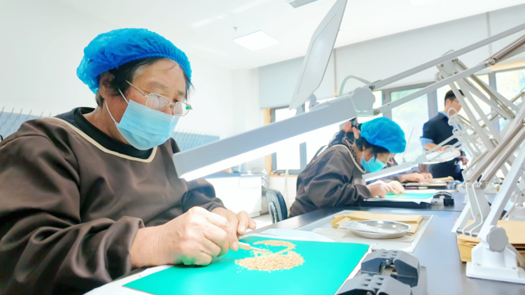 工作人员正在挑拣种子。