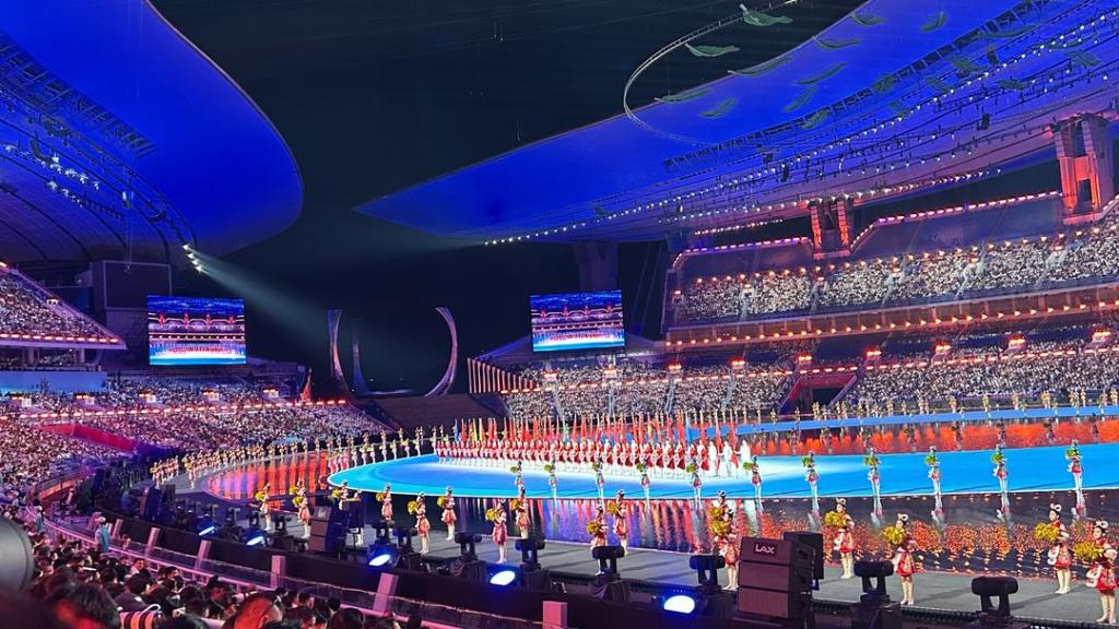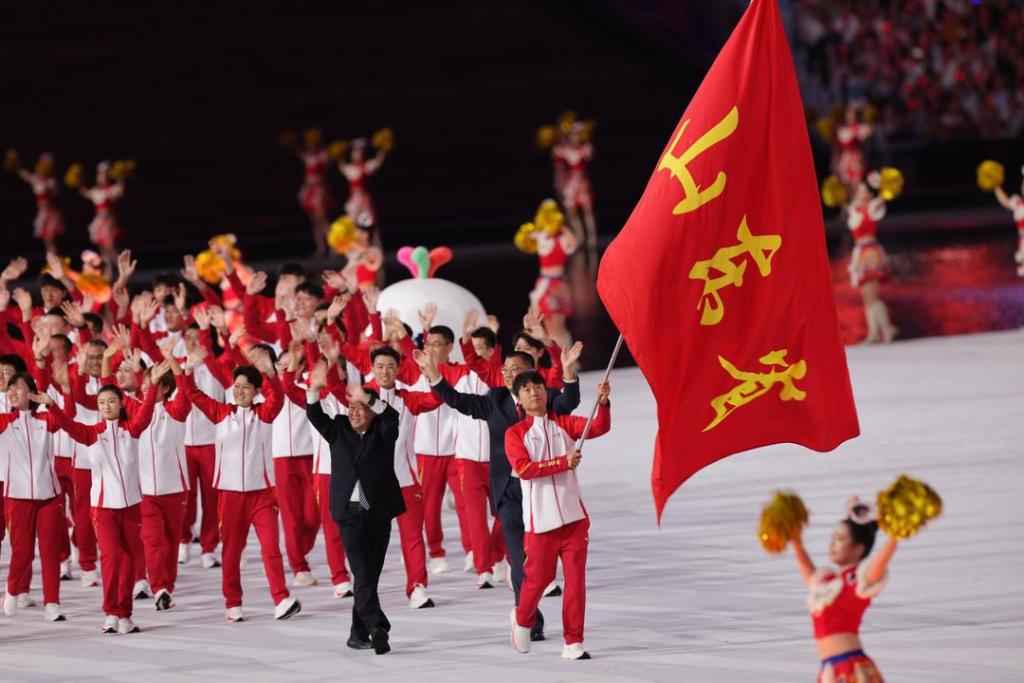 11月9日20时,中华人民共和国第十五届运动会开幕式在广东奥林匹克体育中心举行。各参赛代表团代表入场,山东省代表团亮相,获得掌声与欢呼。来源:大众新闻编辑:李新花 李婕宁一审:贾春毅二审:孙瑞永三审:管延会