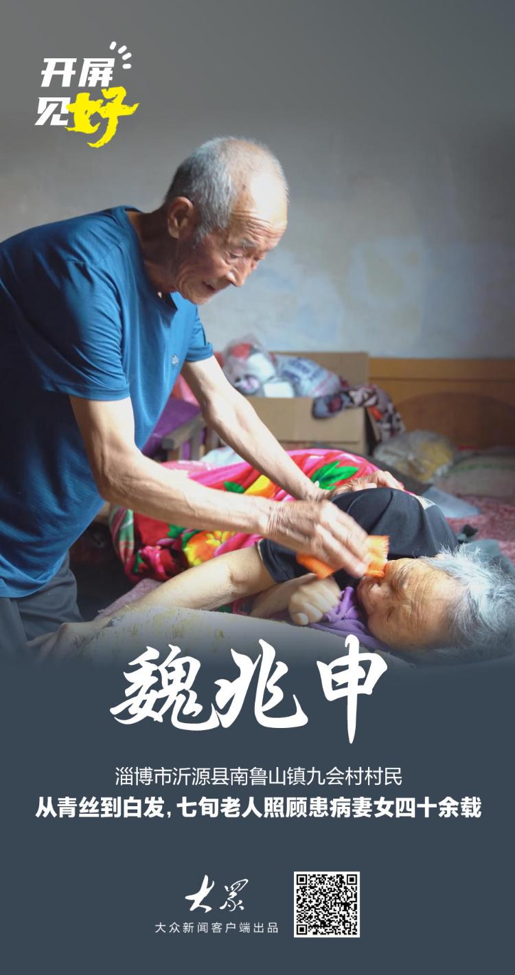 为瘫痪女儿翻身、给脑血栓老伴儿喂饭……这是魏兆申的日常“家务”,他已经做了数十年。