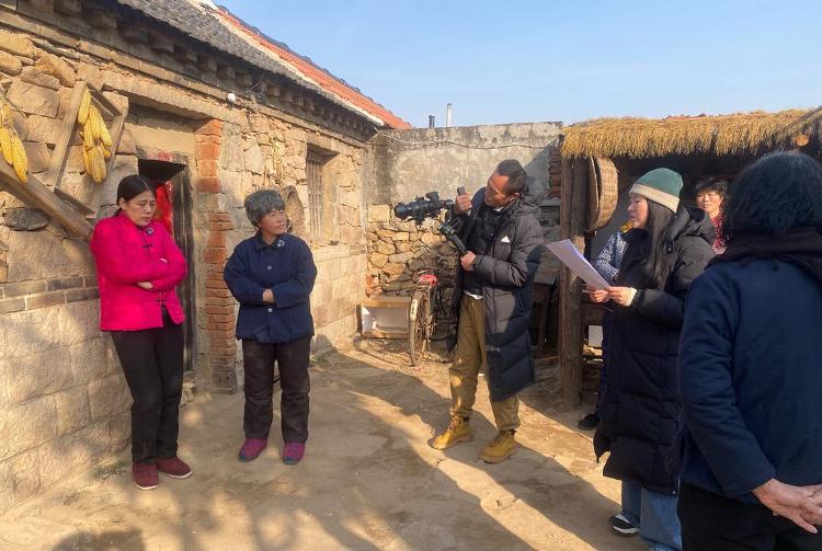 走进青岛西海岸新区的北梁家庄,寒意虽还未散尽,但是村民们拍摄微短剧的热乎劲儿却不低——大伙正赶在春节前录制一部贺岁片,要把地道的乡村年味儿搬上屏幕。