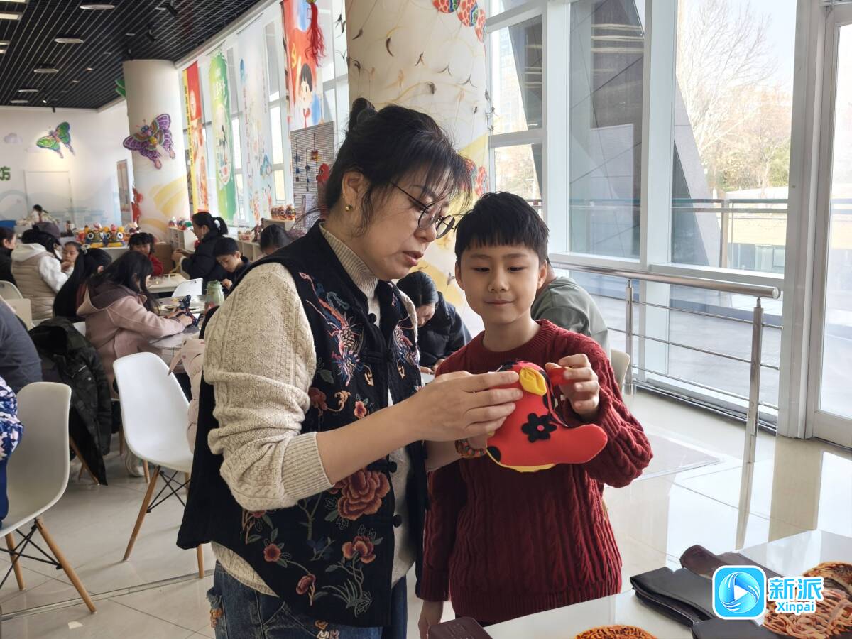 潍坊刺绣市级非遗代表性传承人于静作为志愿者来到当天的活动现场,手把手教孩子们穿针引线。“来,这样捏着针,慢慢穿过去。”在她的指导下,一个个憨态可掬的布老虎在孩子们手中逐渐成形。