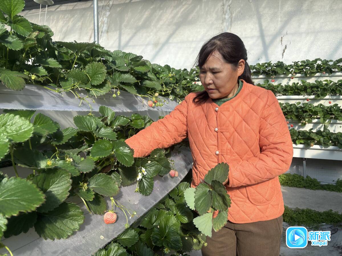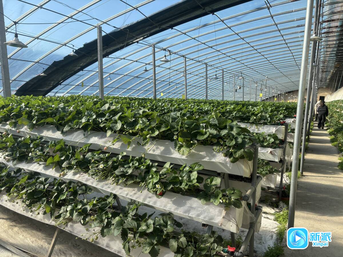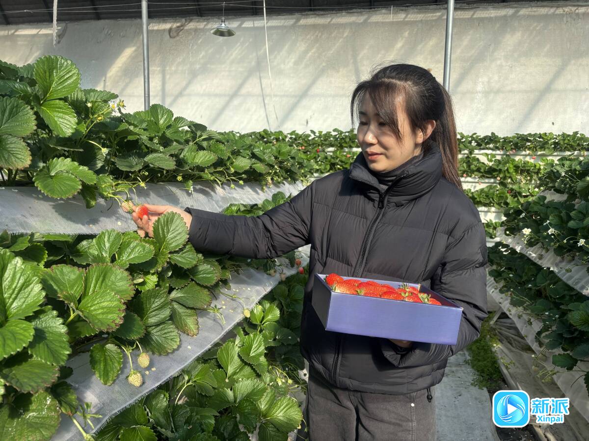 新派讯 时值冬日,潍坊潍城区望留街道杨家成章村明宗生态种植基地的草莓大棚里,草莓陆续成熟,迎来采摘季。这里的草莓悬空而挂,一颗颗草莓从绿色的叶蔓中倒垂下来,一抬头,一伸手,游客便能摘到新鲜饱满、香甜美味的草莓。