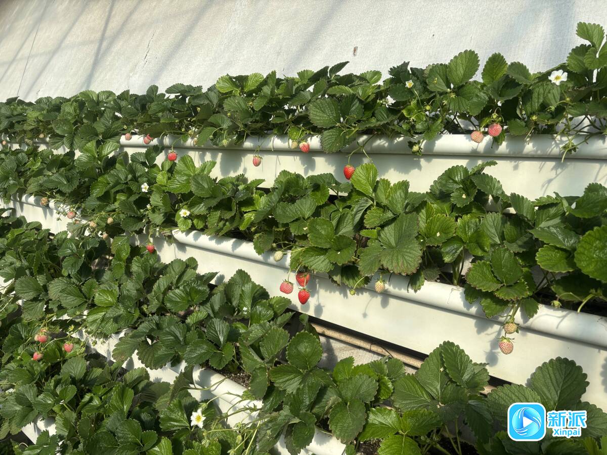 “我们种植草莓的立体支架可不是单纯改变草莓生长位置,里面还藏着很多科技元素,把薄膜掀开,里面黑色的物质看起来有点像是炭灰,这包含椰糠、营养土等成分。”刘志兰是基地草莓大棚的管理员,她说,高架草莓采用全封闭式防虫膜技术,能真正实现100%无农药。同时,利用全自动净水机和水肥一体机,实现了草莓种植全流程的智能化、数据化管理。高科技种植提升了草莓的品质和产量,亩产达4.5吨,可以实现三季种植。