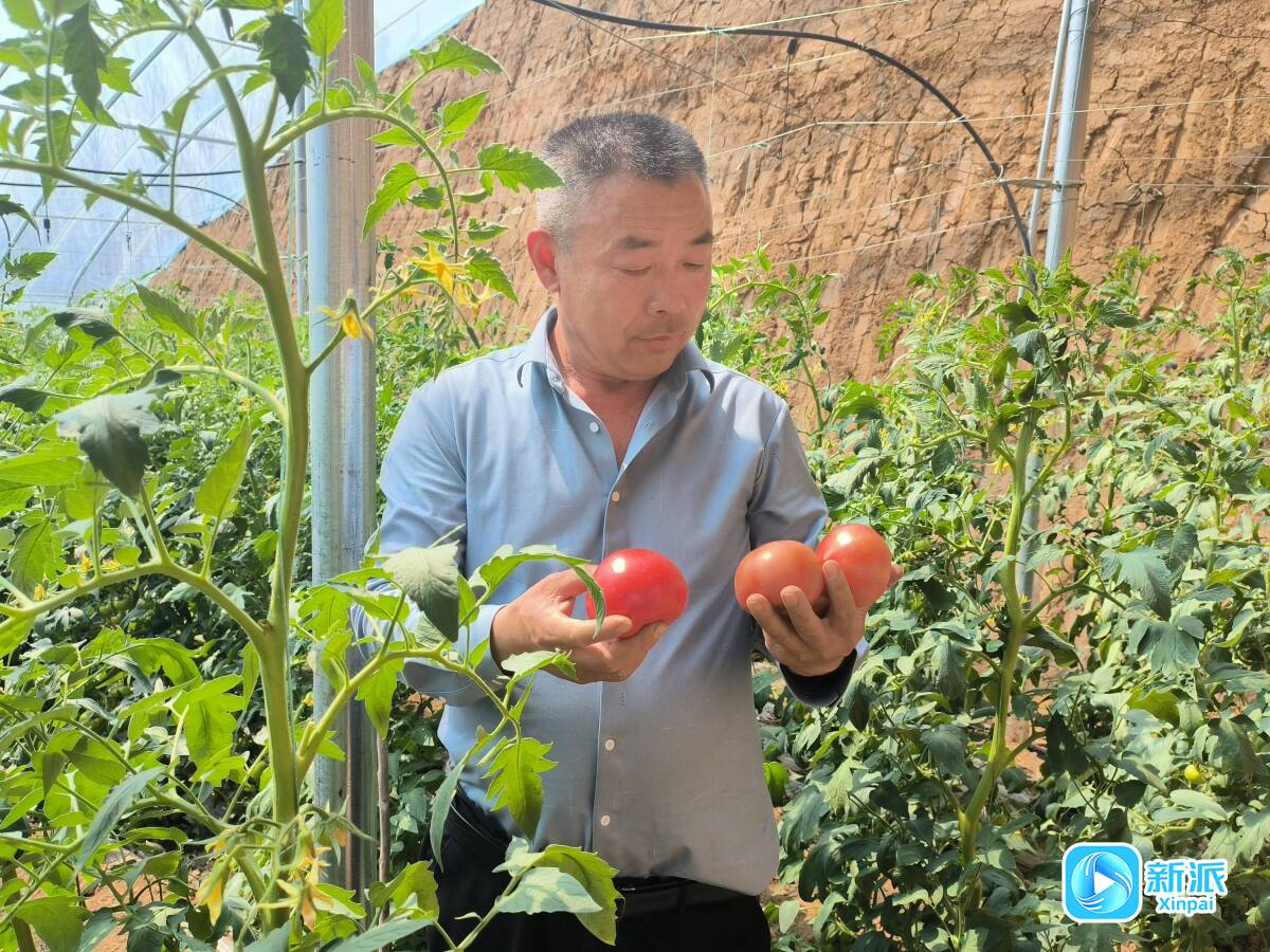 在业家官庄村,村负责人李忠海正在检查西红柿品质。