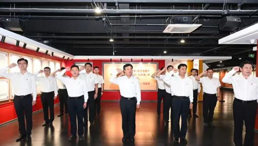 刘运与市委办公室机关第一党支部党员来到潍城区德廉教育基地,通过听取讲解、参观展品、观看视频,接受了一次生动的党性教育。参观结束时,刘运与支部党员一起面向党旗,重温入党誓词,庄严宣誓。