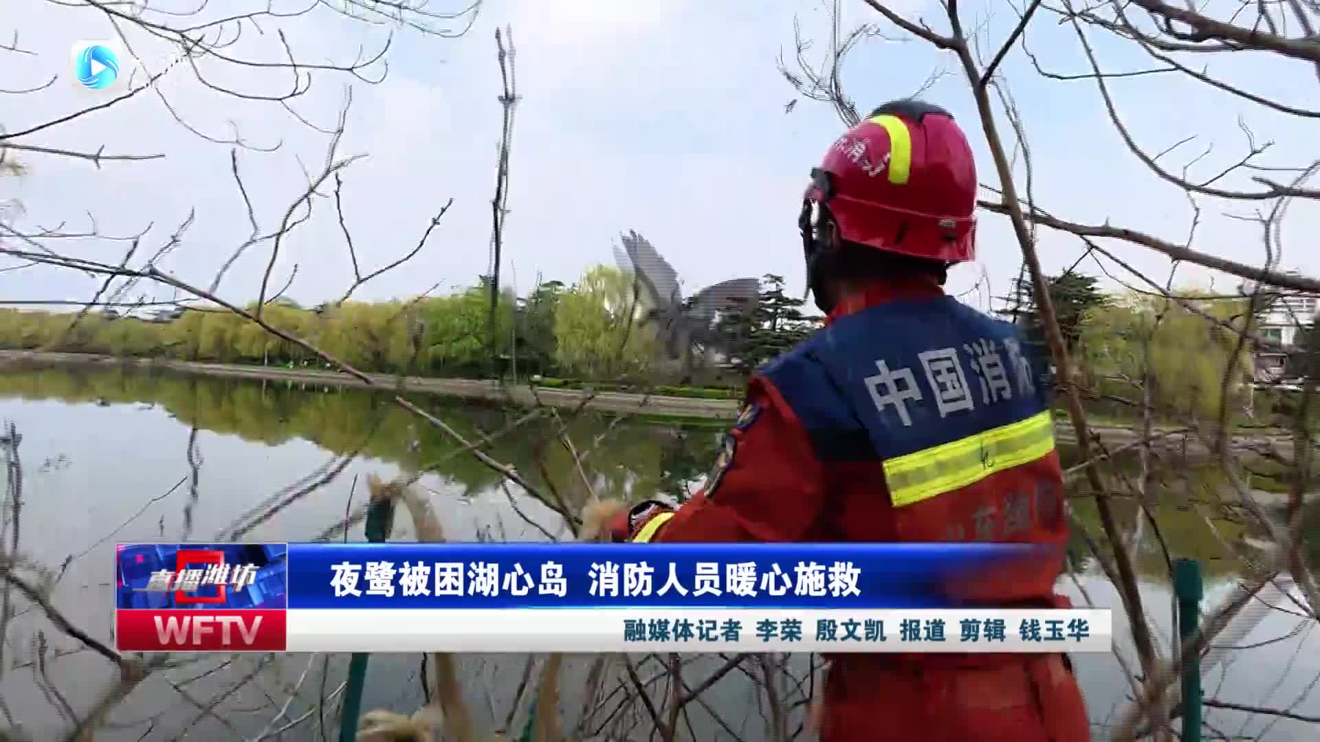 【直播潍坊】夜鹭被困湖心岛 消防人员暖心施救