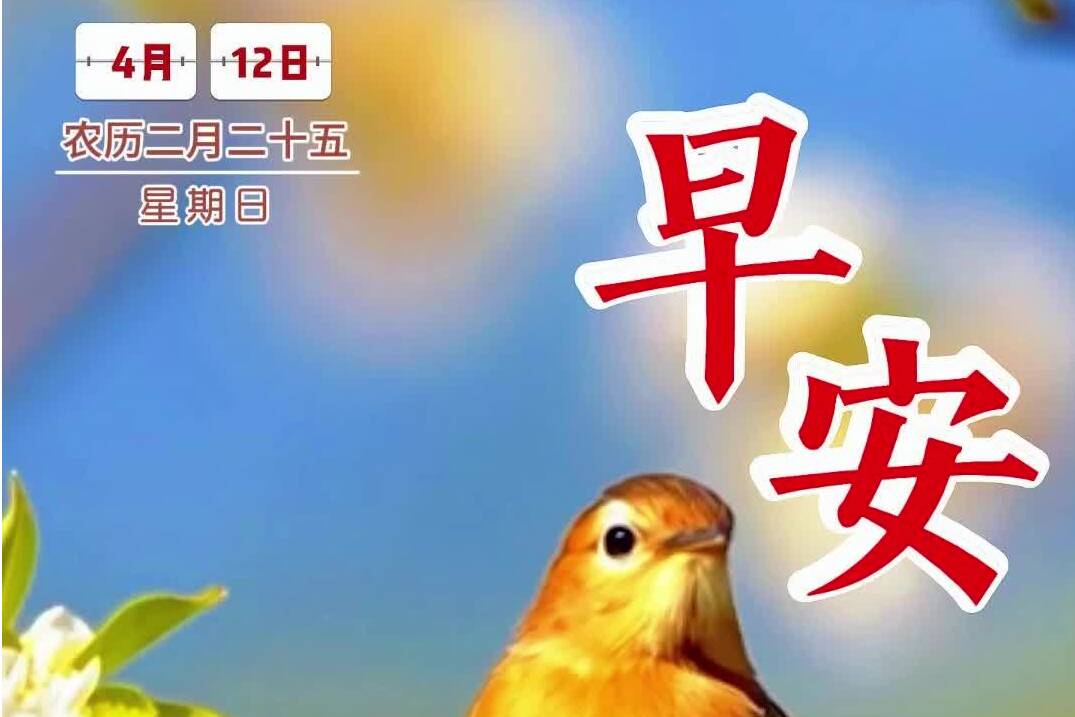 早安,4 月 12 日,星期日。今日春和景明,福运绵长,愿您和家人:岁岁平安,事事顺心,好运久久!