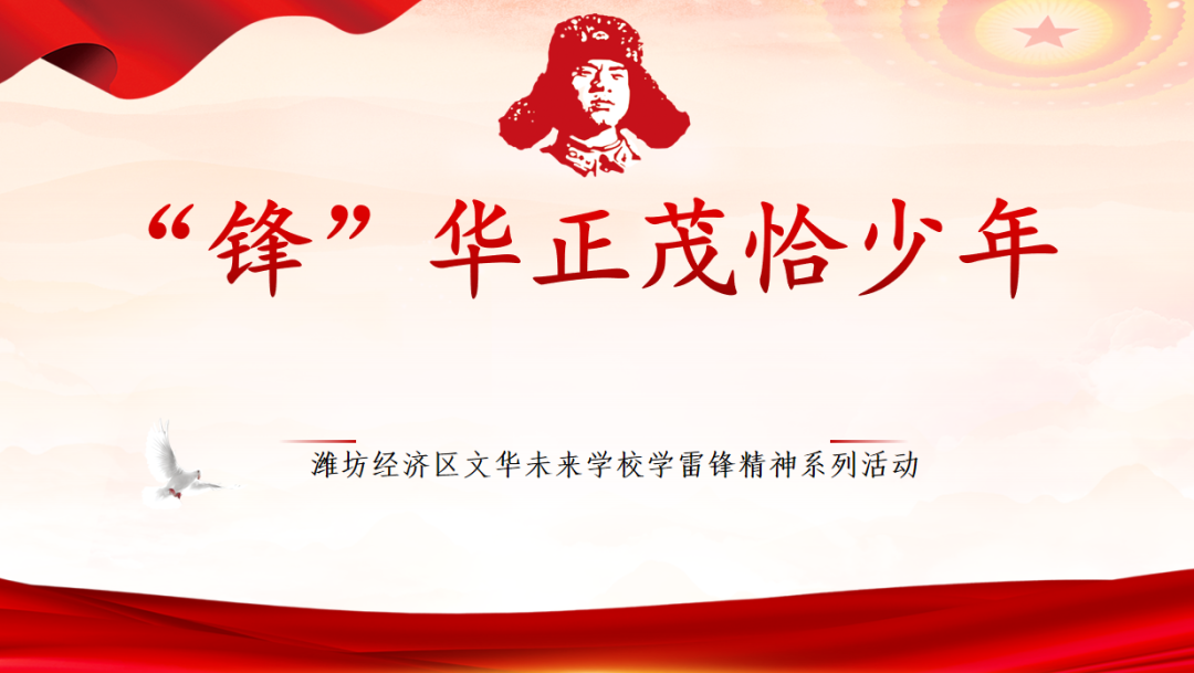 3月5日是全国学雷锋纪念日,为进一步弘扬雷锋精神,让雷锋的奉献精神、集体主义精神、钉子精神和助人为乐的精神,融入少先队员的生活,潍坊经济区文华未来学校开展了“锋”华正茂恰少年—学雷锋主题系列活动。