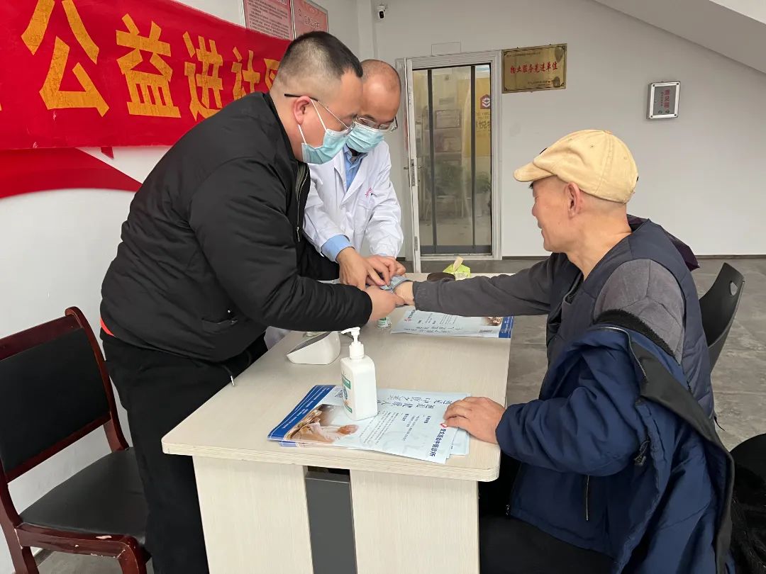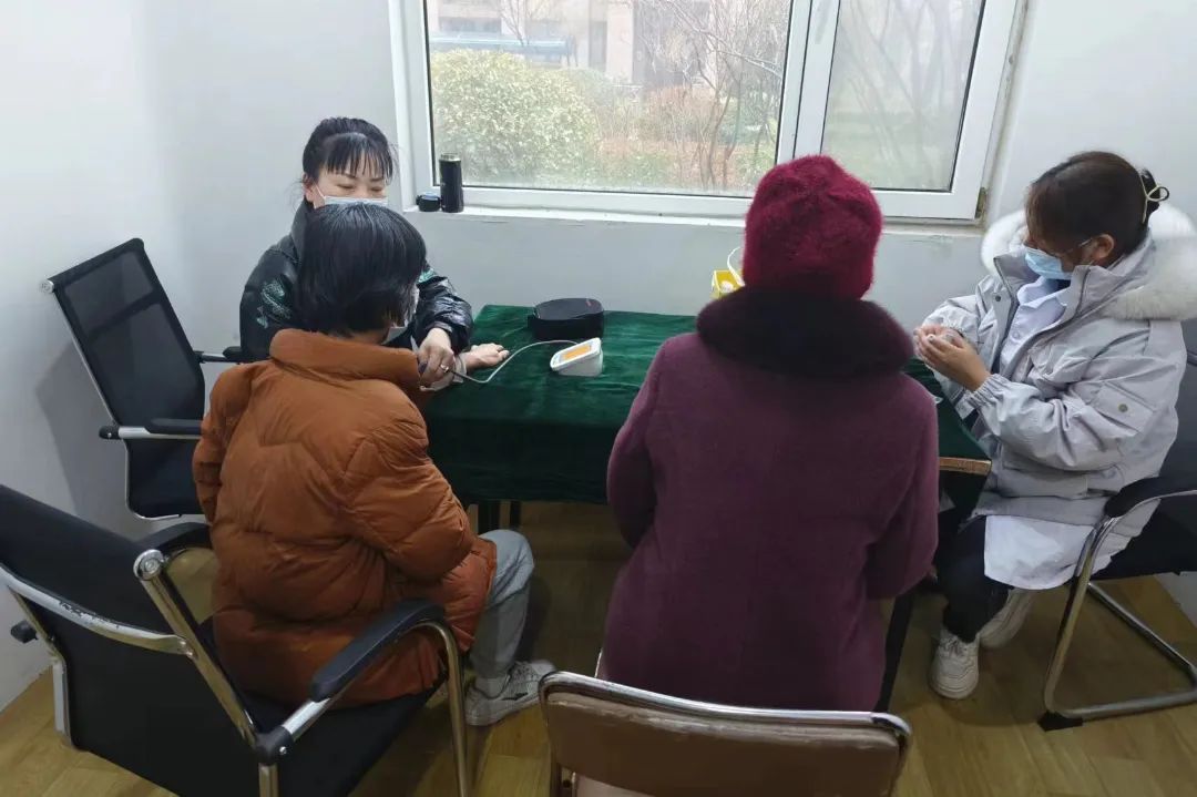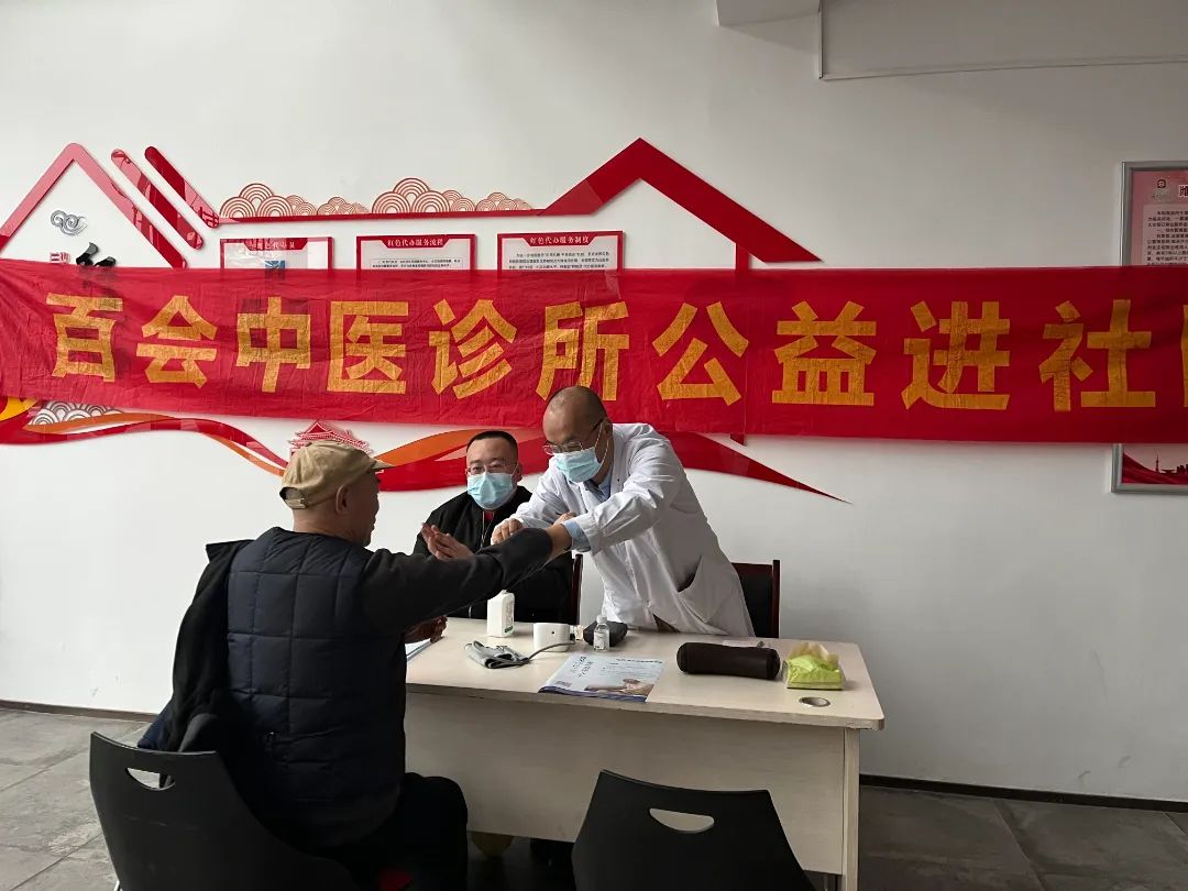 百会中医诊所的医护人员耐心组织老年人测血压、测血糖,并为到场的居民进行中医把脉,通过“望、闻、问、切”的方式进行诊断,认真询问居民的既往病史,细心解答居民提出的疑问,对其健康状况进行评估,给出合理的保健、治疗建议。