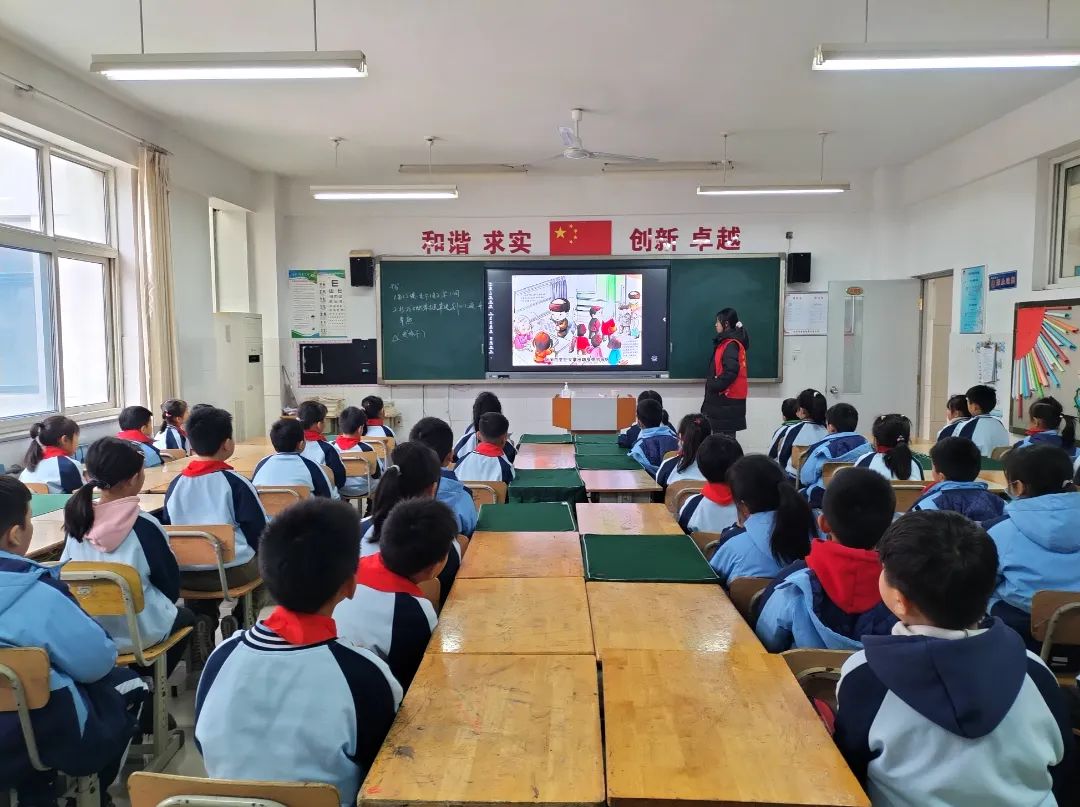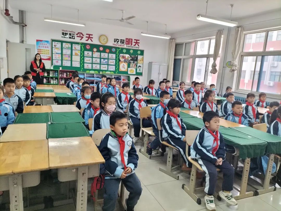 中队辅导员带领少先队员和预备队员们一起观看雷锋主题的电影,号召更多队员在日常生活中主动学雷锋、做雷锋。