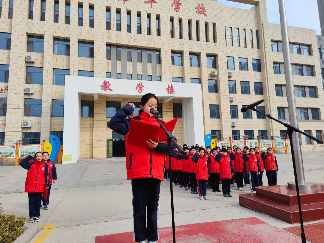 在升旗仪式上,少先队员代表以“锋”华正茂恰少年为主题,利用国旗下讲话为阵地,宣传雷锋精神;孙颖校长号召队员学习雷锋精神,正式启动了学雷锋系列活动。