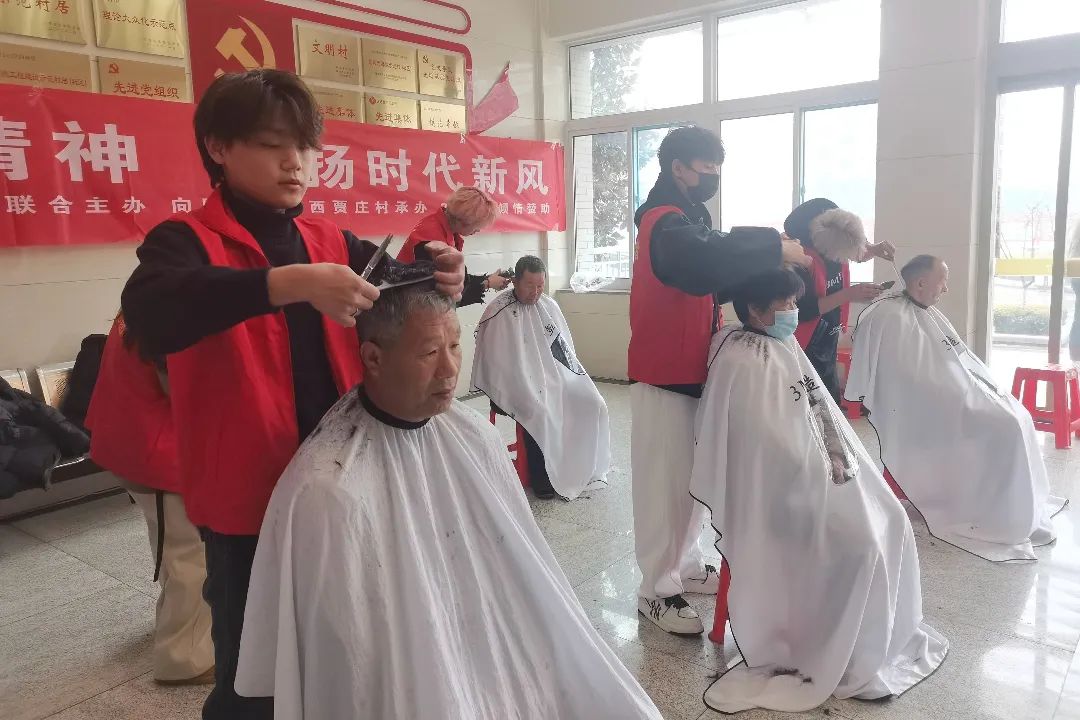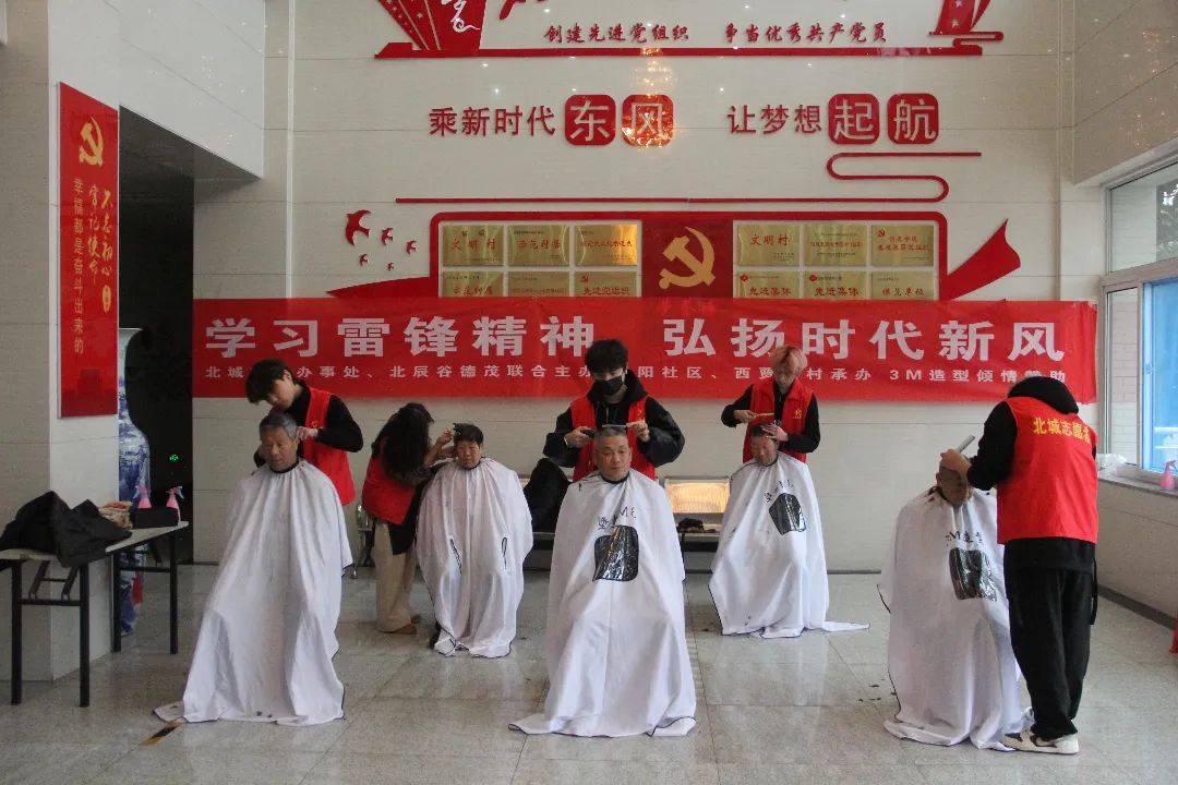 一大早,迎着淅沥的小雨,来自北辰谷德茂爱心商家——3M造型的造型师们就冒雨来到了西贾庄村综合办公楼,同时,社区的志愿者们也已经把活动现场准备妥当,剪发区、等候区、衣物放置区井井有条。