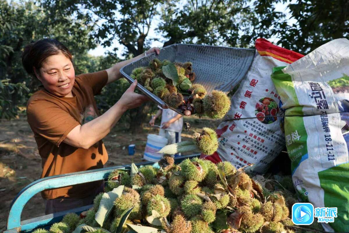 新派讯 金秋时节,走进诸城市昌城镇,万亩栗园里硕果累累,饱满的栗蓬在枝头炸开,露出油亮的栗果,栗农们穿梭林间捡拾收获,交织成一幅丰收图景。