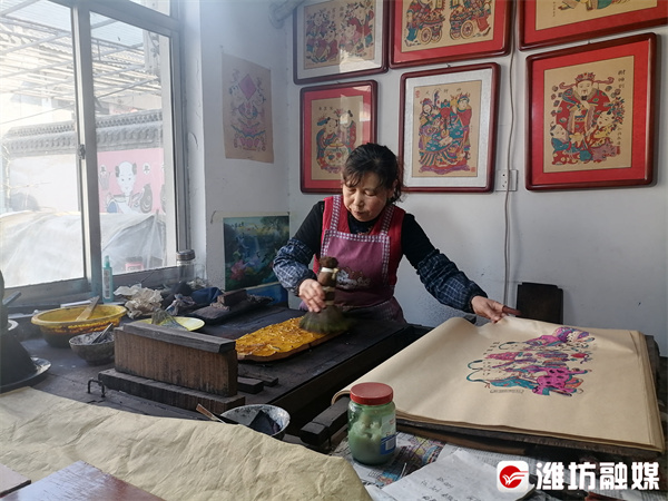 四十多年前,少年时期的杨乃东开始跟随父亲杨明智学习制作年画,到目前为止,已先后创作、刻制木版年画700余套3500多块,在他的影响下,木版年画艺术也得以广泛传承。如今,杨乃东的儿子和儿媳成为了杨家埠和兴永画店的第十四代传承人。“为了吸引更多人喜欢年画,我们不仅有‘定制年画’,还创新制作了帆布包、抱枕、油纸伞等一系列年画衍生品,深受客户喜爱。”儿媳杨静说。