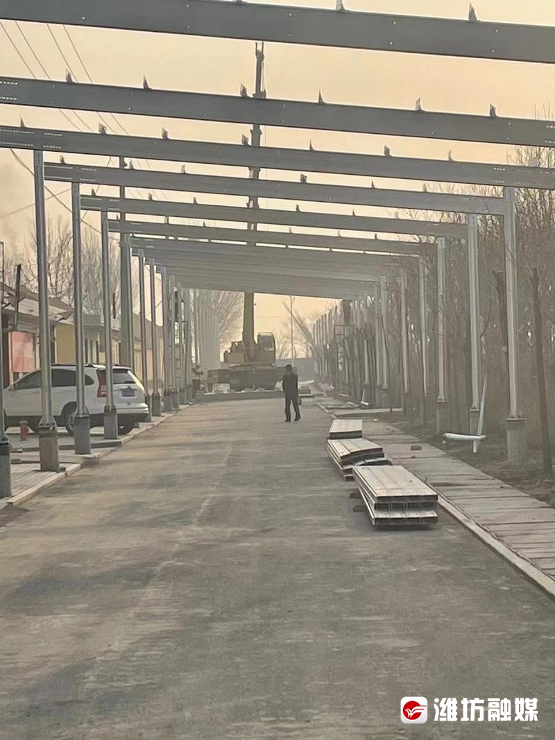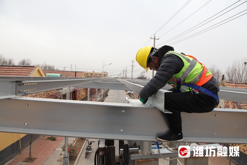 潍坊日报社潍坊融媒讯 规划整齐的村庄,村内街道用来建设光伏发电装置,村集体年收入20多万元。3月27日,记者在峡山区岞山街道颜家庄看到,进村的道路和村内的街道上架起了长排的钢架,横平竖直的框架全部是用标准钢材焊接,在村子中间位置,3名工人正在4米高的排架上施工。
