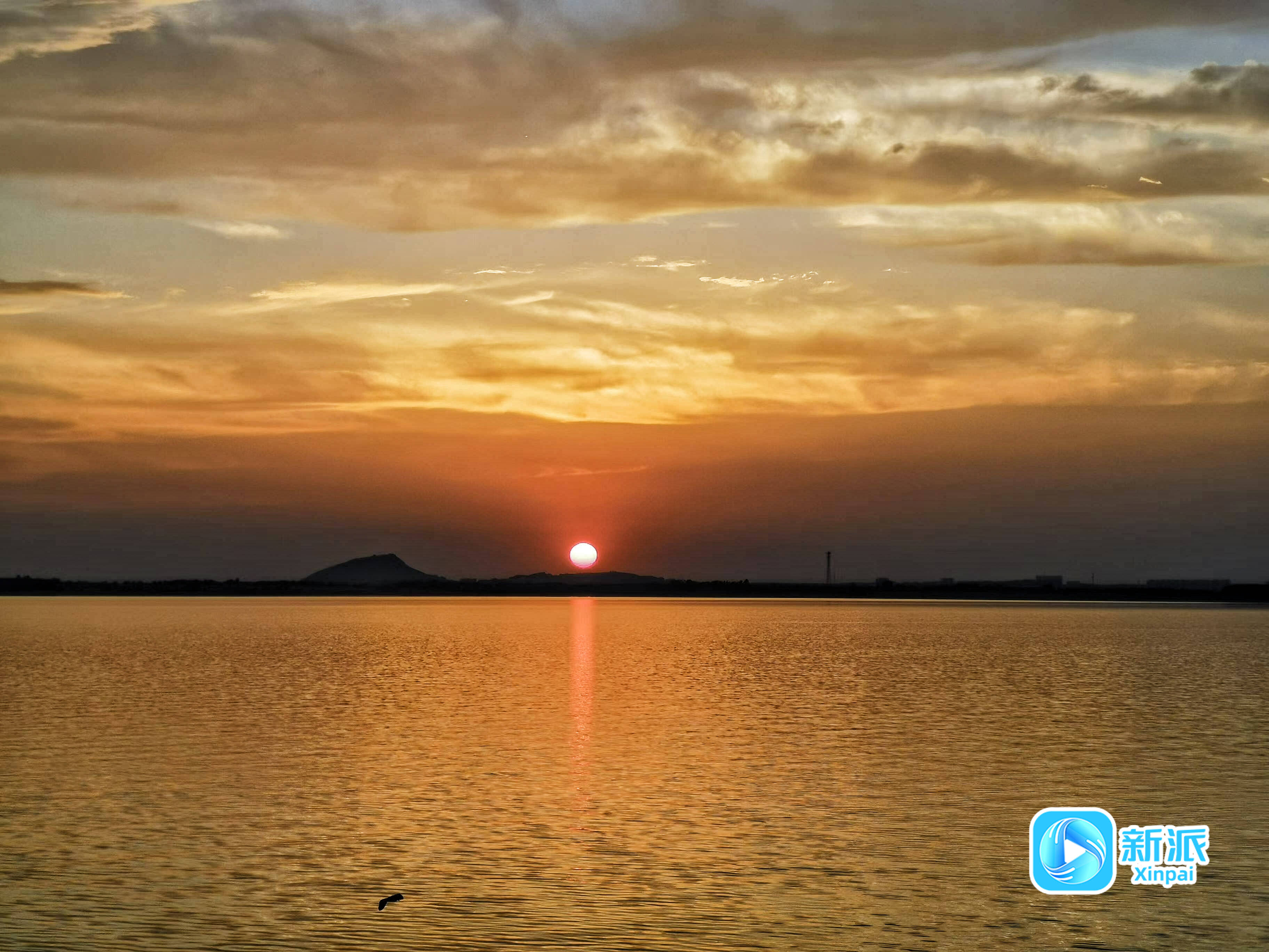湖面的涟漪与天边的余晖交织成一片,金色的光紧偎深邃的大地,水天一色、落日熔金。这一刻,时光仿佛凝固,令人恍若置身于一幅动人心魄的油画世界,感受着大自然的神奇与美丽。
