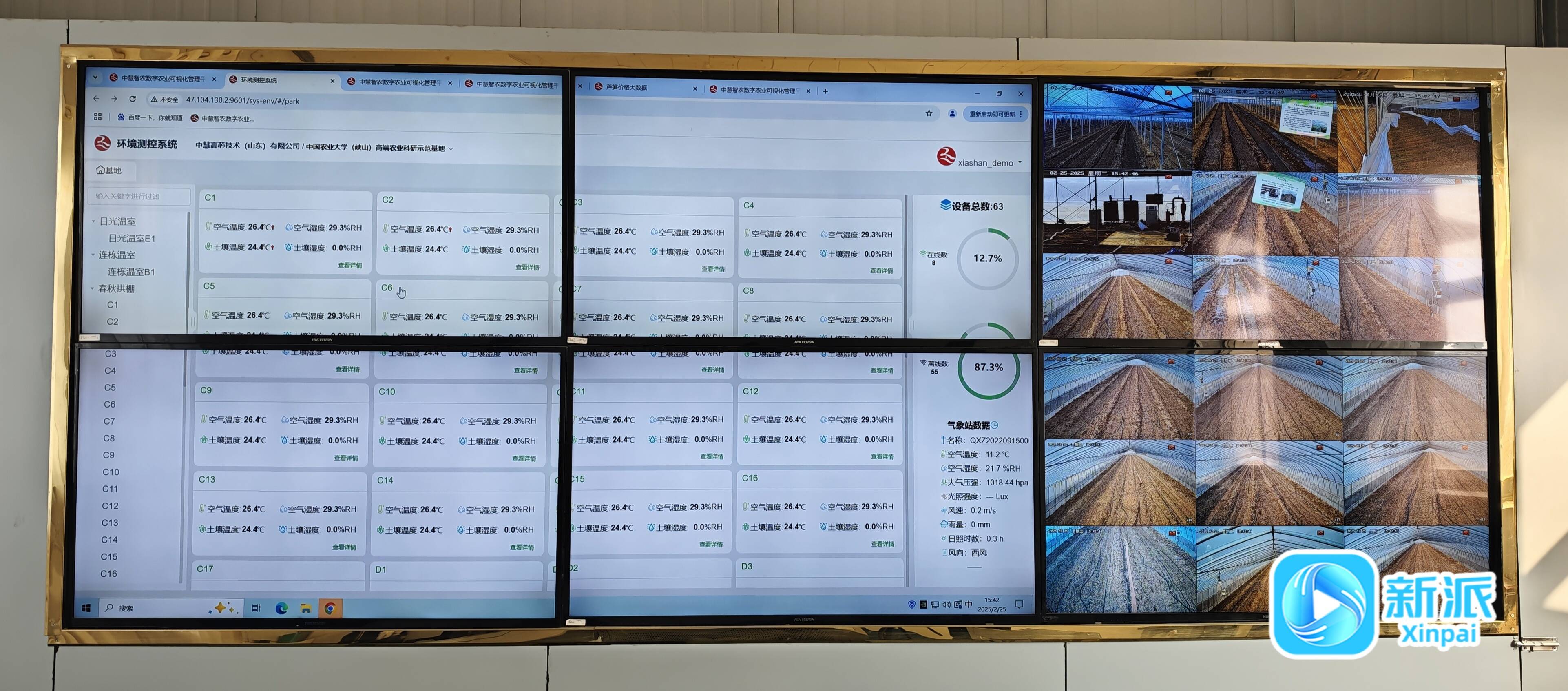 走进芦笋种植大棚,智能化的种植场景令人眼前一亮。一排排整齐的智能化种植槽取代了传统的种植方式,翠绿的芦笋苗在精准调控的环境中茁壮成长。“我们采用先进的智能温室种植系统,通过传感器实时监测作物生长环境,利用大数据分析,制定最优化的种植方案,不但延长了采收期,还使其口感更加爽脆。”园区负责人臧志鑫对记者介绍道,这套系统不仅能实时监测土壤湿度、温度、光照强度等关键参数,精准控制水肥供给,确保芦笋生长周期所需的养分,还能有效避免资源浪费,实现节水节肥50%以上。
