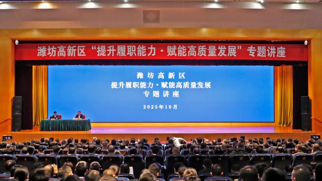 10月25日,潍坊高新区举办“提升履职能力•赋能高质量发展”专题讲座,特邀苏州大学教授、江苏省重点培育智库东吴智库执行院长段进军作专题报告。党工委、管委会领导班子成员,各单位中层以上干部、年轻干部,规模以上企业和重点、高成长性企业负责人约700人参加。