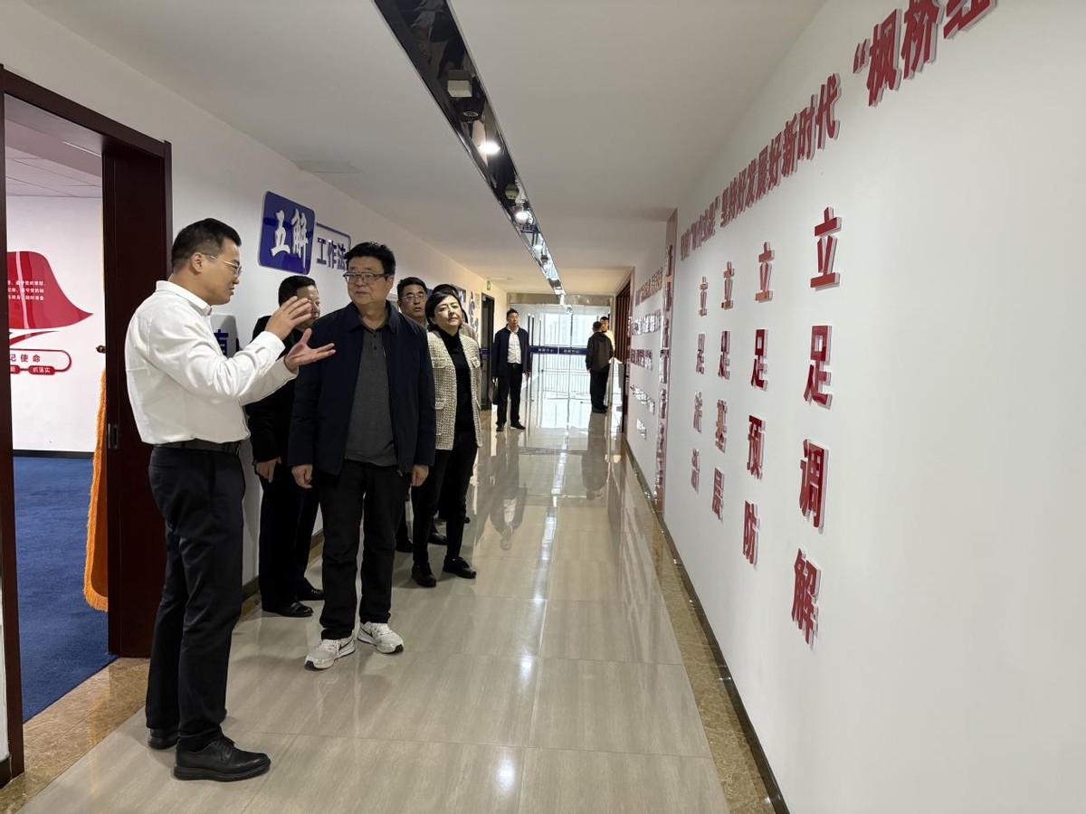 2025年10月25日下午,《人民法治》杂志社社长兼总编辑、新华社北京分社原社长梁相斌,副总编辑徐峰、主任秦良俊一行到“老窑匠”城乡建设调解中心专题调研。潍坊市奎文区委副书记陈珊珊,奎文区委常委、政法委书记范绍顺等领导陪同调研。