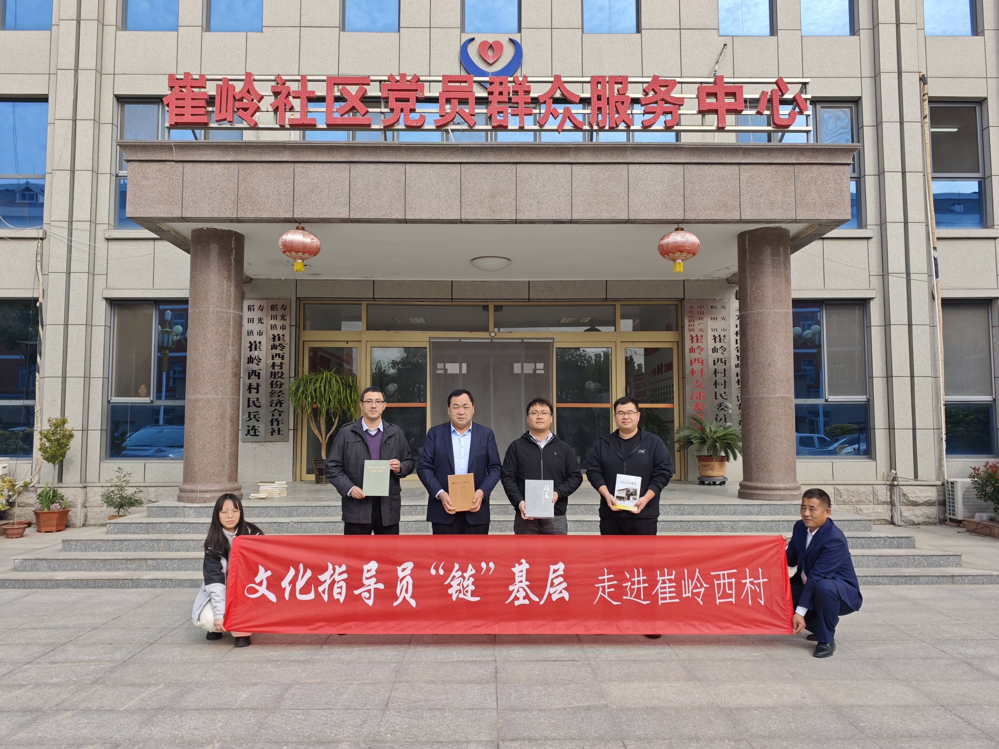 发展研究部负责人柴德闯到寿光市崔岭西村进行对接,实地了解需求,就村秧歌队培训、民间传说故事挖掘等进行了细致交流,并代表中心捐赠了《钟灵毓秀话潍坊》《潍水风物》等文化读物。