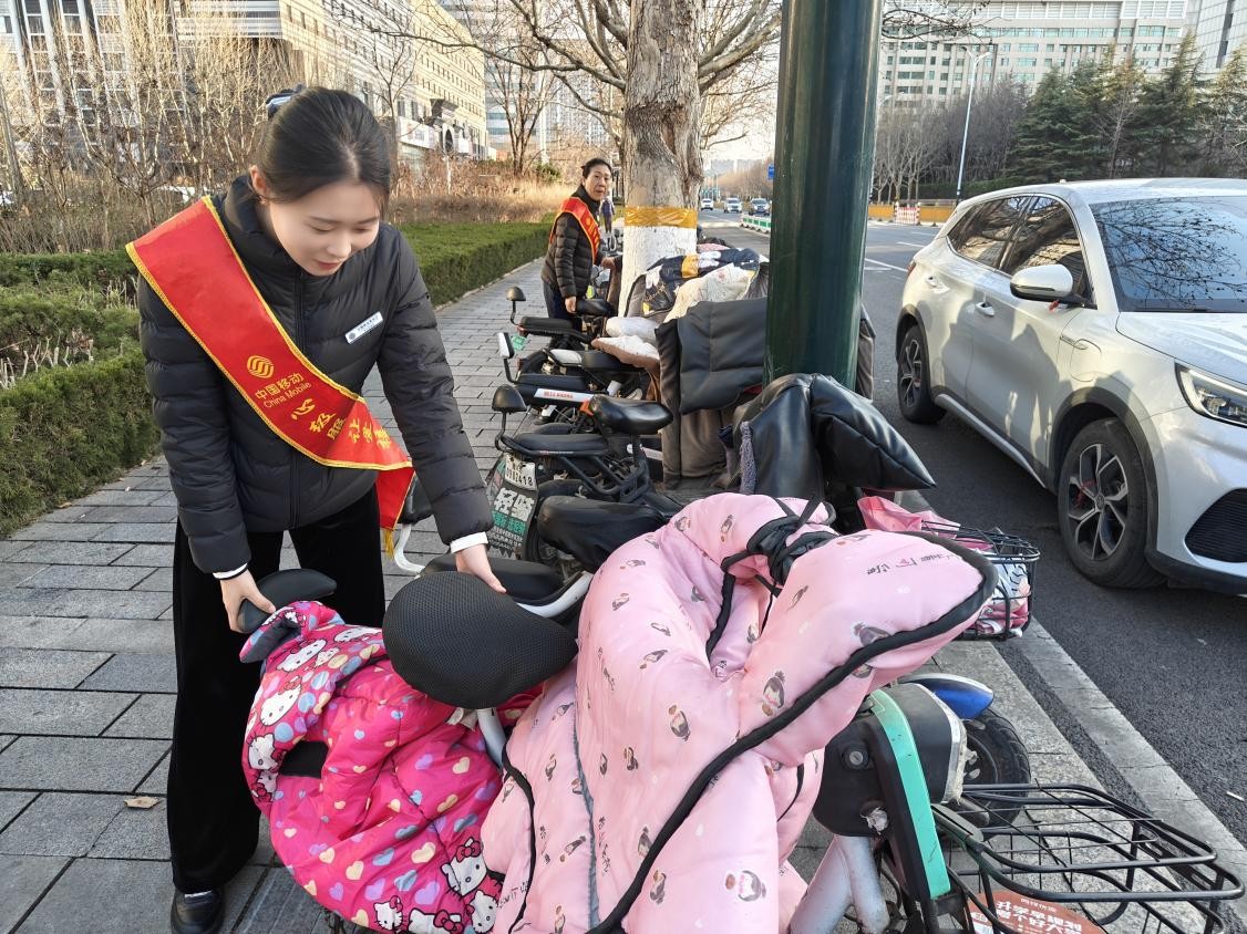 在东方路、四平路等主干道,移动志愿者开展文明引导志愿服务,对人行道、盲道、路口乱停乱放的电瓶车进行规范整理,引导市民文明停放、遵守交通规则,以实际行动维护城市秩序,倡导文明新风。