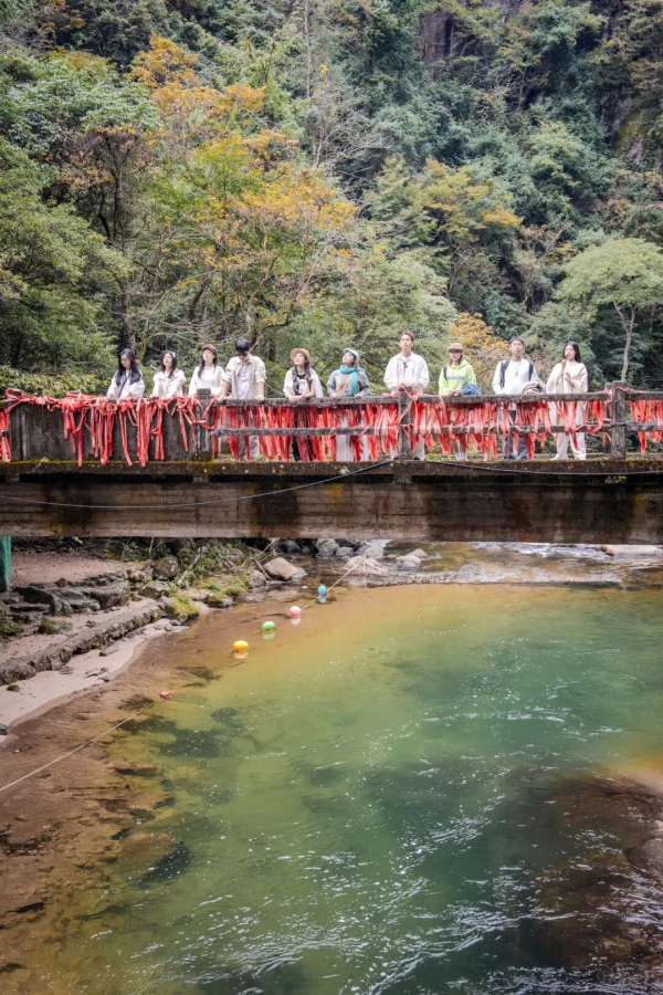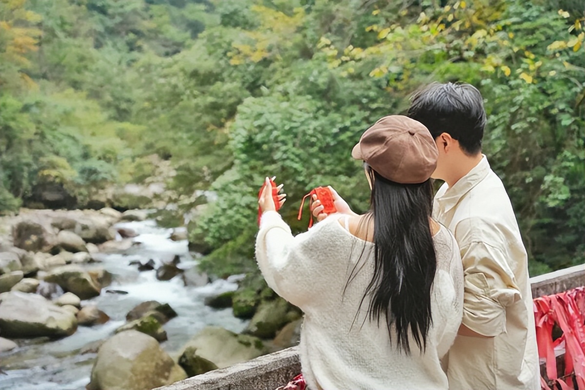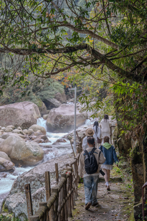 这里是徒步者的疗愈道场。循着镜花溪沿岸的步道溯溪而行,脚步的节奏与呼吸同步,目光所及是青苔石壁的肌理,耳畔充盈溪流的变奏,鼻腔则被草木与泥土的原始气息所占据。行至桃花桥,随风舞动的祈福丝带,又将这份自然的浸润与内心的祈愿悄然链接。行走本身便成了一次清理心理缓存、重获内在秩序的深度疗愈。