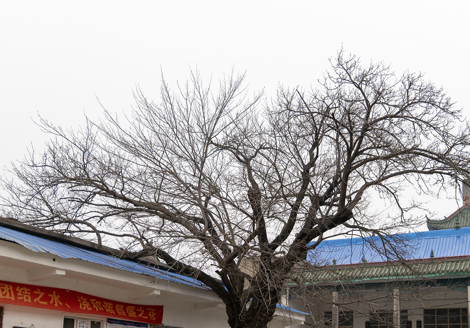 村民们搬离了旧址,这棵白蜡树依然静静地矗立在那里。在这个冬日,我们站在树下抬头仰望,分明看到古树的细枝上已经长出小小的嫩芽,它正等待着新的春天。