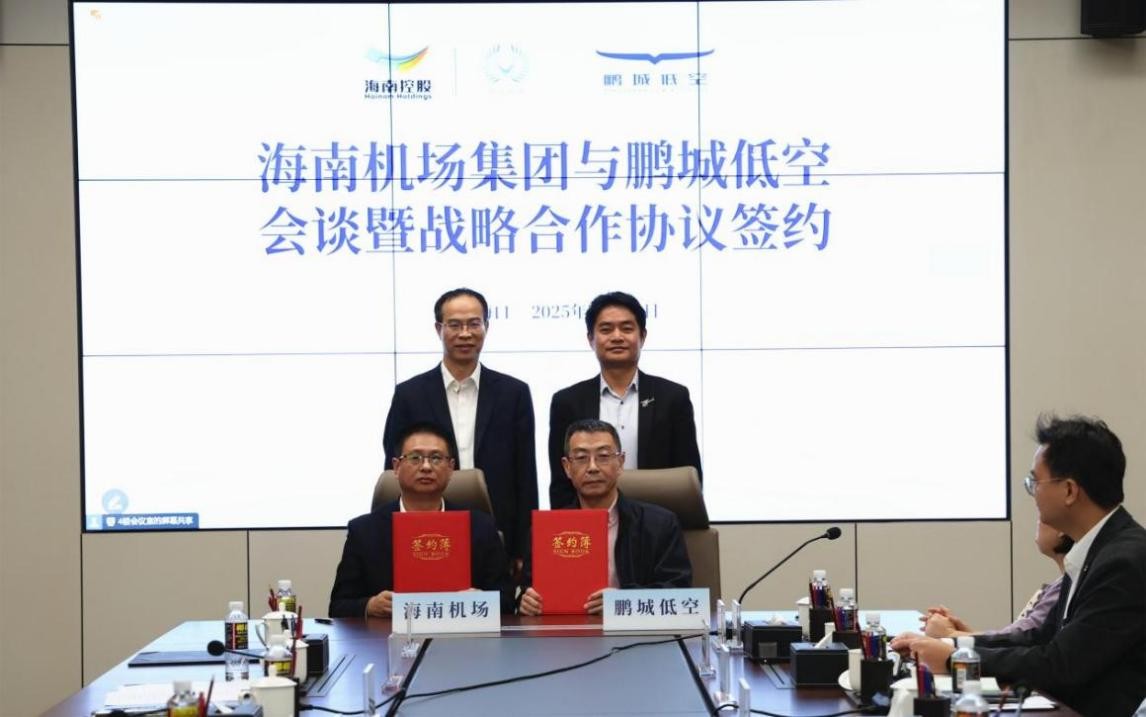 在国家大力推进低空经济发展与海南自贸港全岛封关运作进入冲刺阶段的双重历史机遇下,近日,海南机场集团与鹏城低空经济产业发展(深圳)有限公司在海南海口互联网金融大厦举行会谈暨战略合作协议签约仪式,旨在依托海南自贸港政策优势与鹏城低空供应链优势,助力海南打造低空经济产业生态,为自贸港高质量发展注入新动能。海南控股党委副书记、海南机场集团党委书记、董事长肖发宣,海南机场党委委员、副总裁赵红旗,海南临空党委书记、董事长王海烨,海南海岛商业董事长杨靖等集团高层及相关业务负责人出席会议;鹏城低空董事长、粤港澳大湾区低空经济无人机协会执行会长刘立波率领亿航智能、中科星图、特金信息等20多家企业代表参加签约仪式。